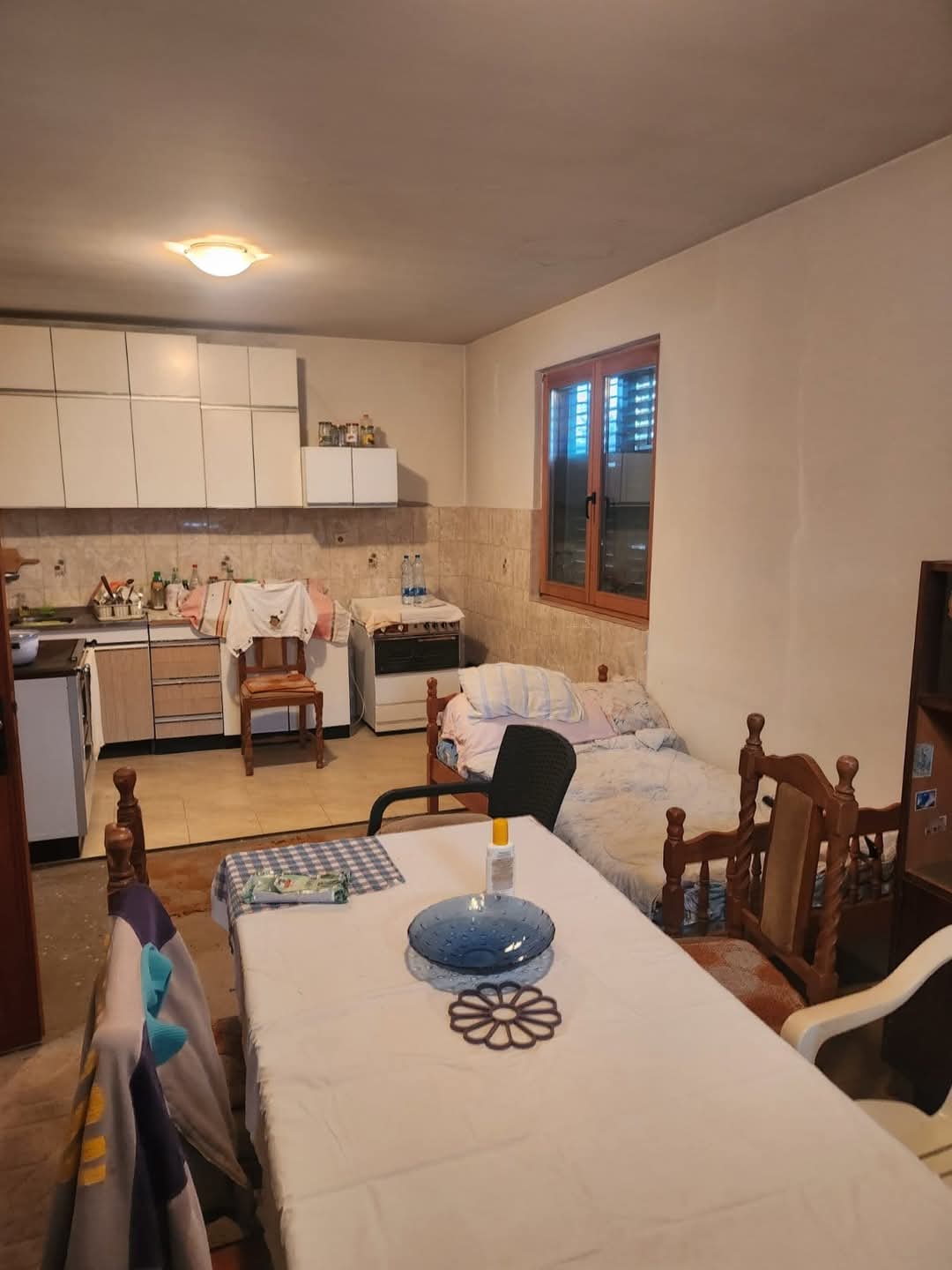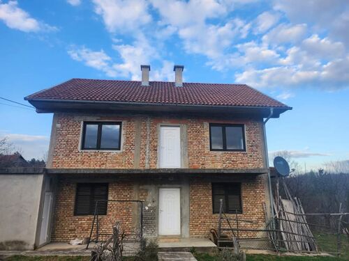 First floor, rough work and carpentry done, same 82 square meters with access to external stairs up and a terrace along the whole house. High attic. Built with large-format bricks, the walls are about 40 cm thick. An auxiliary building made of brick, blocks and tiles with two rooms has about 30 square meters. A septic tank with a diameter of about four meters and a depth of three meters, built and lined with concrete. Graska water, telephone, well with hydrophore. Price 99,000 euros. Contact: +38164/327-05-55