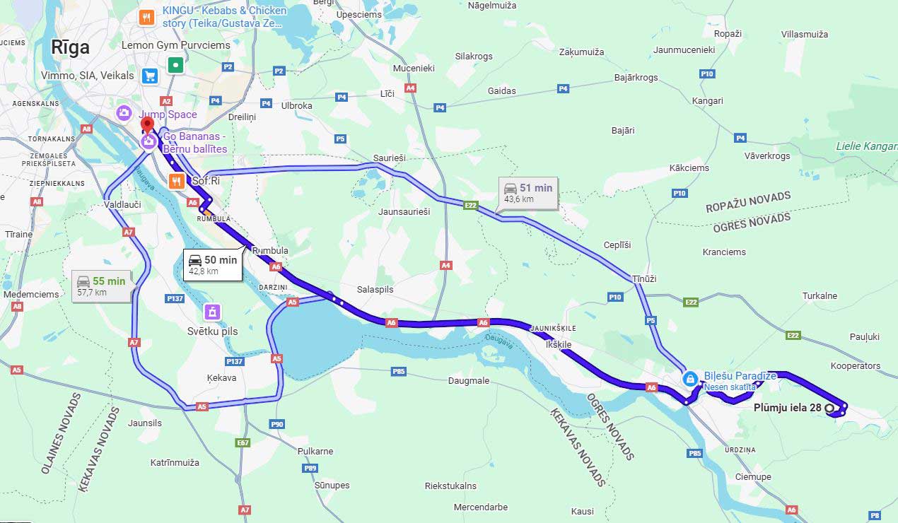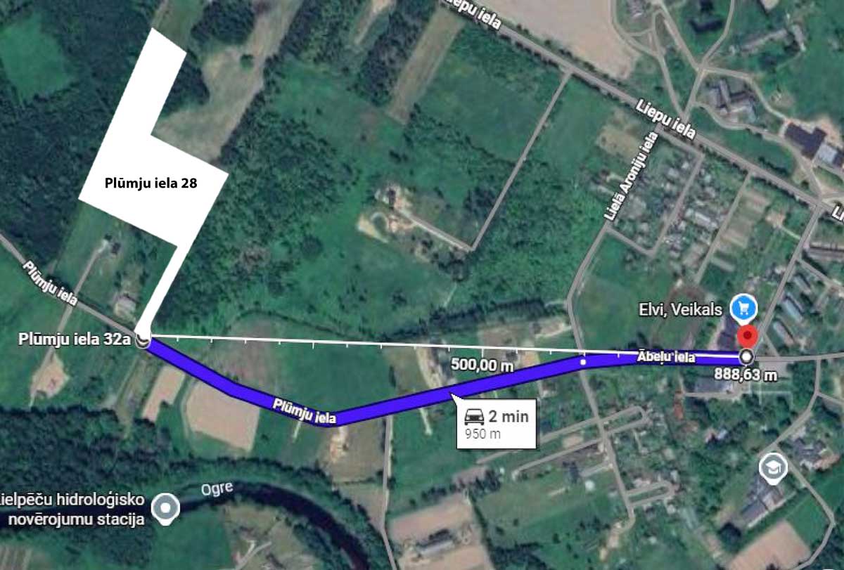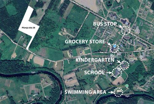 The area is quiet and surrounded by nature, close to forest areas and the Ogre River, while everyday infrastructure such as a school, kindergarten, shops and public transport are only minutes away. Riga city can be reached in about 50 minutes by car.