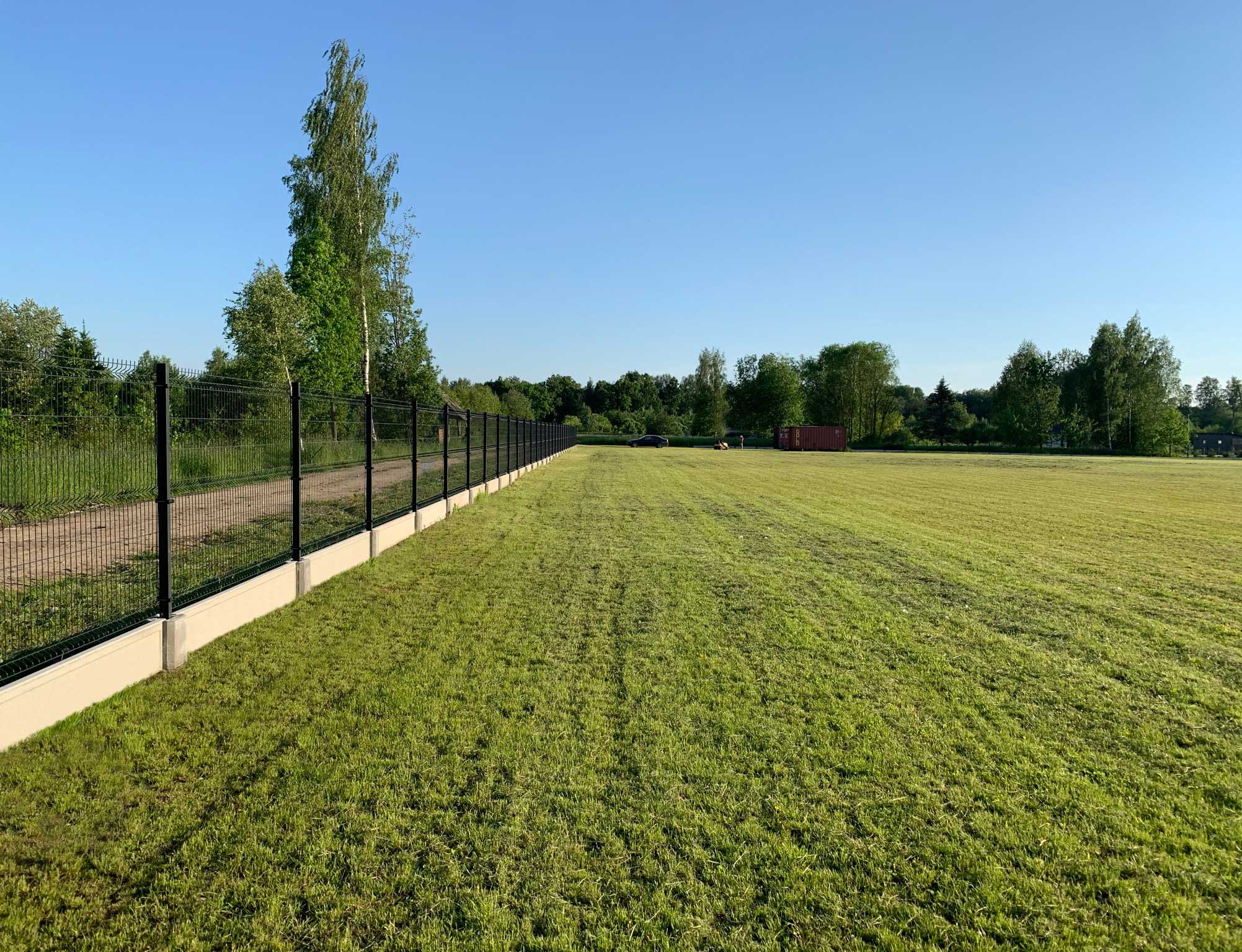 The land is fully prepared for development: the territory has been leveled and landscaped, regularly maintained, and partially fenced with a high-quality Baker panel fence with a concrete base.