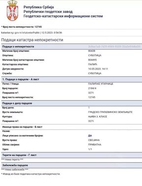 Lake Palic-Spa-Aqua Park, construction plots in the eco and ethno tourism zone, included in the master plan, near the Aqua Park (in the same street, Novosadski put) and in the immediate vicinity of the Đorđević farm (https://www.facebook.com/salasdjordjevicofficialpage/photos) and highway corridor 10. In the eco and ethno tourism zone, the construction of tourist and catering facilities with accommodation facilities, facilities with catering and entertainment facilities, business and residential facilities (residential buildings with rooms for rent or business facilities), as well as the construction of facilities intended for sports and recreation ⬇⬇⬇ Purpose of floors: Basement - for auxiliary, accompanying work rooms, (garage, warehouses, warehouses, etc.); Basement - for auxiliary, accompanying work rooms, (garage, warehouses, warehouses, etc.);Ground floor and upper ground floor - for business premises according to the type of activity (entrance halls, receptions, accommodation facilities, trade and catering facilities, shops, entertainment halls, commercial facilities, craft shops; Floor - for residential, business premises depending on the type of business, accommodation facilities, catering facilities... Attic and mansard - for business premises, accommodation facilities, residential premises and auxiliary premises. We offer four large plots K.O. Palić, the first plot of the area 3,075 m2 (plot no. 2184/3), the second plot 3,271 m2 (plot no. 2184/4), the third plot 3,271 m2 (plot no. 2184/6). residential buildings up to 1,900 m2 on one plot (not counting the basement and basement). The price is 30 euros per m2 in the case of buying one plot, with the purchase of all four plots the price is negotiated.