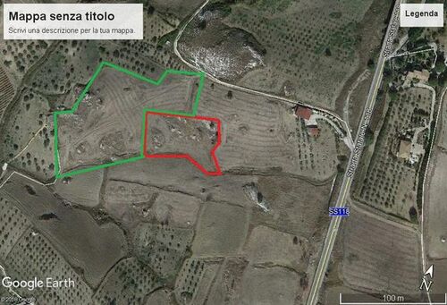 Agricultural land with the presence of several olive trees located in Cda Savarini which covers an area of approx 13000 sqm for the price of 16000 euros (area outlined in green).
