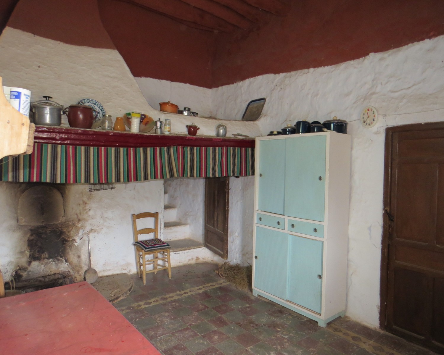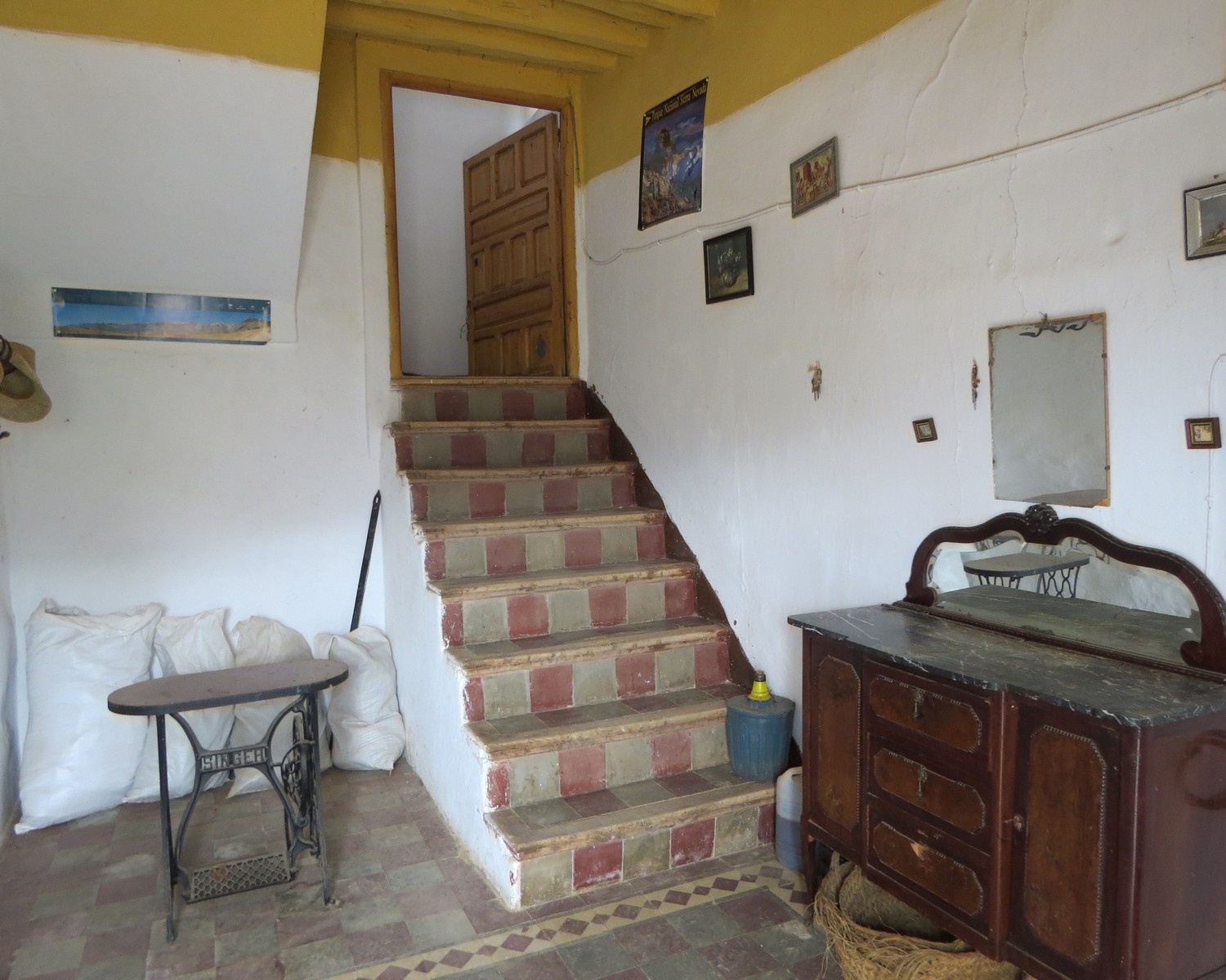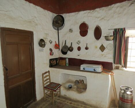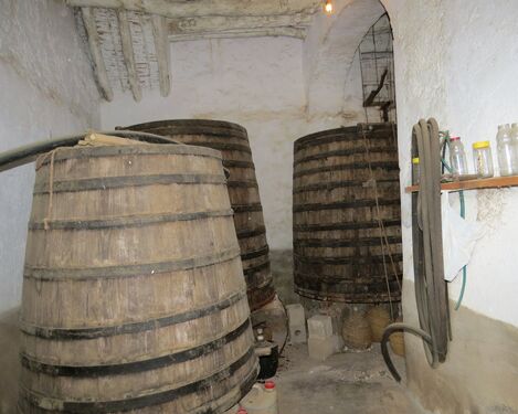 The main living area of this sprawling property has many wonderful original features including handmade floor tiles, huge open fireplace with bread oven, wooden beam and cane ceilings. On the ground floor is a living room, kitchen with stairs up to a large storeroom and entrance to the bodega. This contains some beautiful large oak wine vats not used for many years.