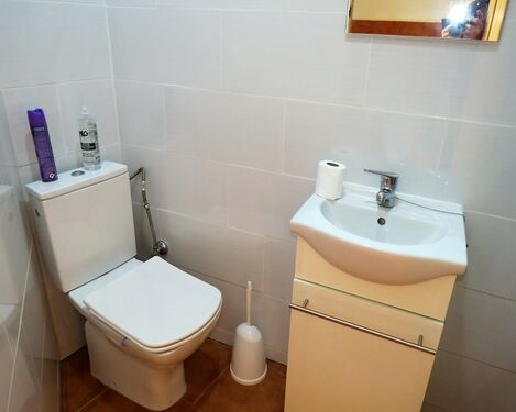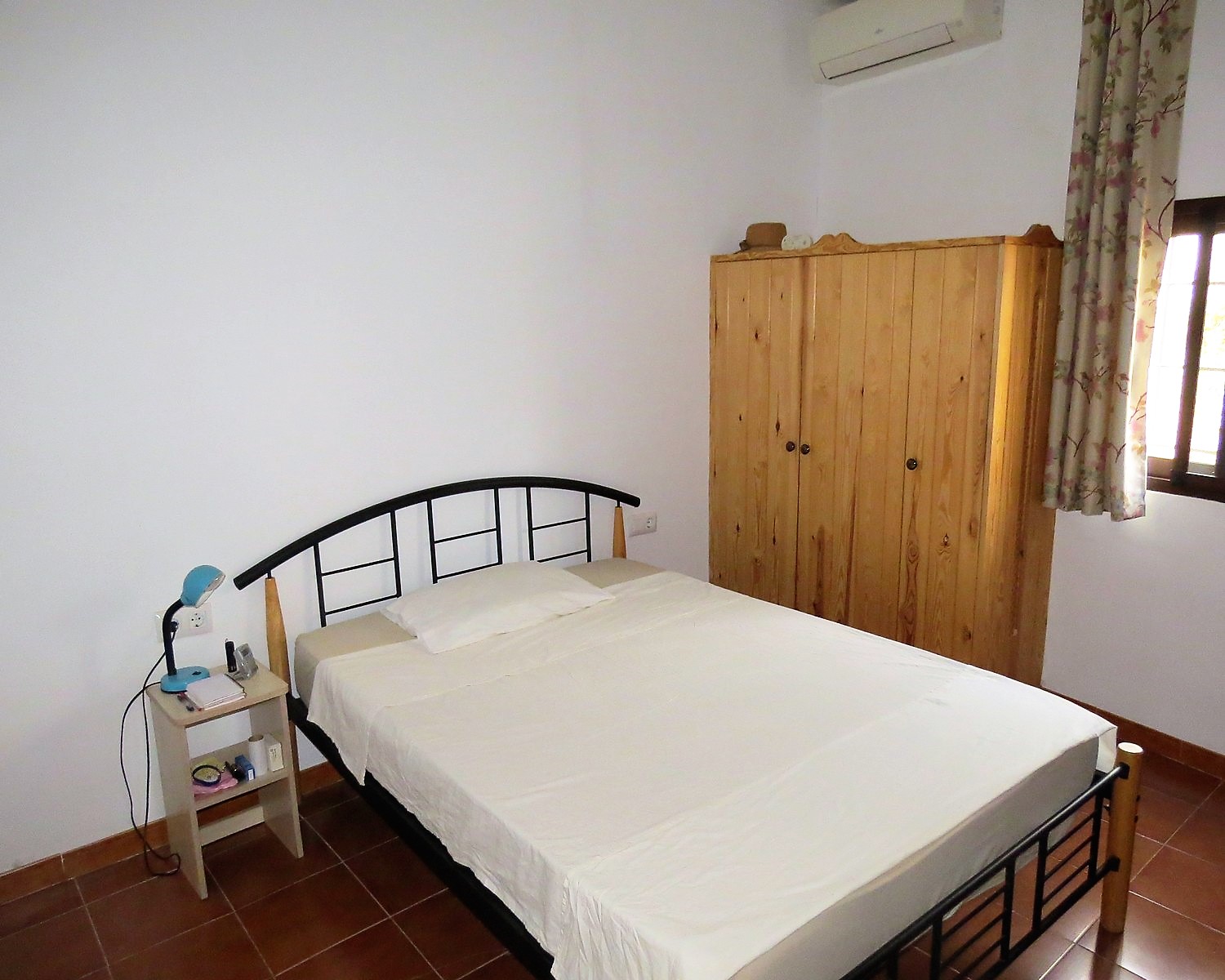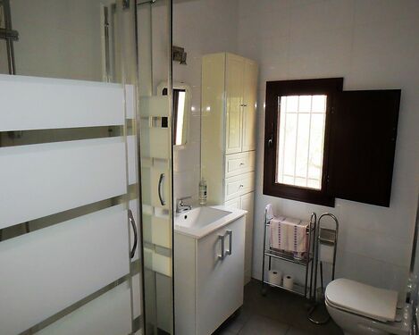 A wide staircase leads up to a landing giving access to three good size double bedrooms and a large family shower room. One bedroom has a fitted wardrobe and air con, one has freestanding wardrobes and air con, the other has doors leading to a good size sunny balcony.