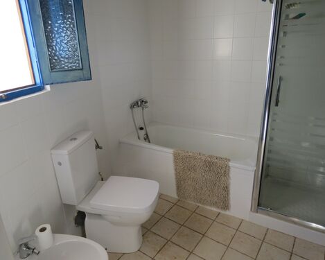 From the living area are stairs, with wooden handrails, down to a hall with access to a double bedroom, large bathroom and a utility area. There is also another door giving street access and a door to the same terrace that is accessed from the kitchen. The bathroom has double shower cubicle, bath, vanity unit, wc and bidet. The utility area has a traditional washbasin, washing machine and gas boiler.