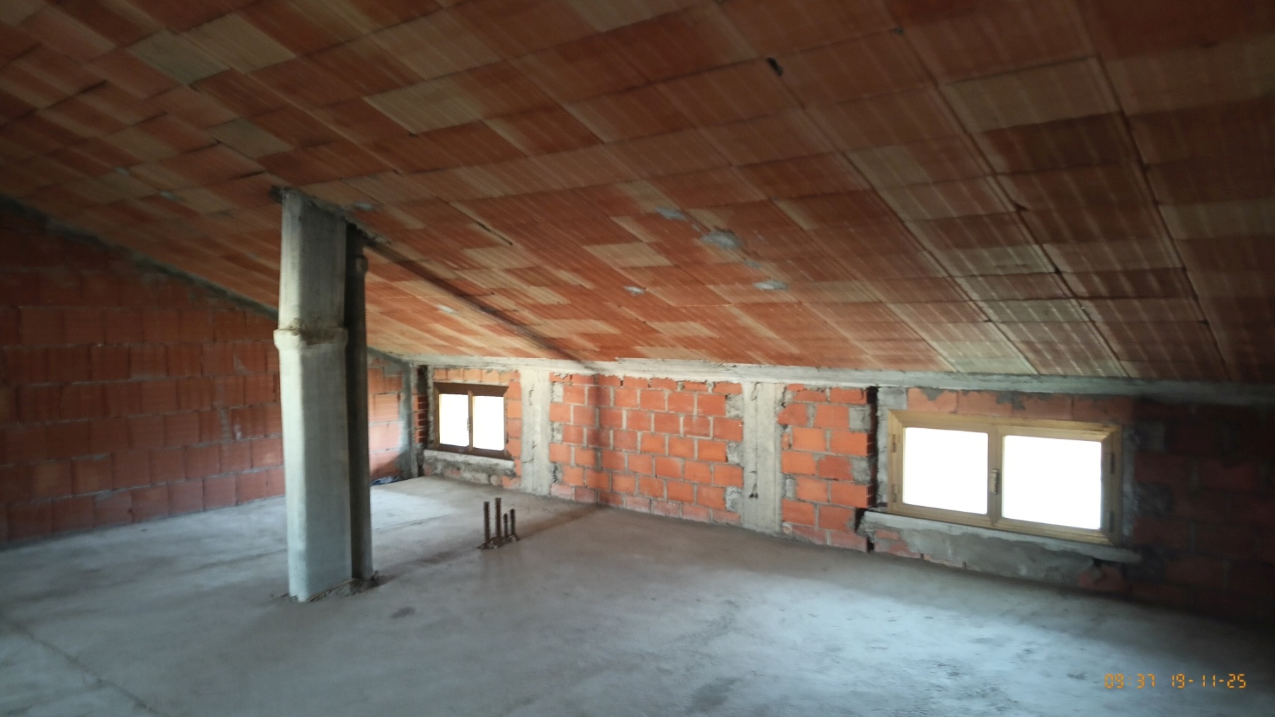 Further up, you reach the rustic attic (60 sqm) with two dormer windows overlooking the courtyard and two windows on the opposite side, with plumbing pre-installation.