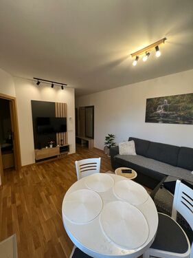- The apartment has a structure of 1.5 and consists of a living room, a kitchen with a dining room, a bedroom with a French bed, as well as a bathroom and a spacious terrace.