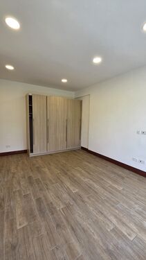 Natural light floods through expansive windows, offering serene views of Karura Forest. The apartment features a cloakroom, dedicated laundry utility area, solar water heating, and reliable borehole and city council water supply, complemented by a full backup generator.