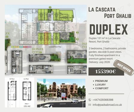 Experience luxury Red Sea living in this 131 sqm garden duplex at La Cascata Resort, Port Ghalib.