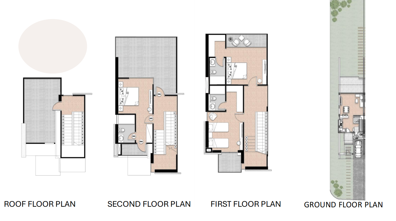 A spacious multi-level villa offering luxury living across four floors, including a private garden and expansive rooftop terrace. This standalone unit is ideal for families or investors seeking a unique residential experience in a secure beachfront resort.