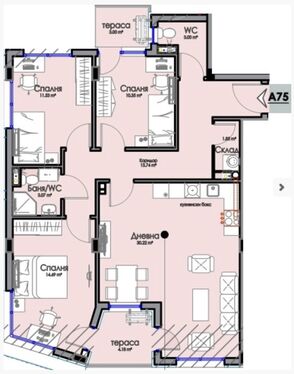 Apartment A75 is a spacious four-bedroom residence with a functional layout, suitable for family living or as a solid investment property. The west-facing exposure provides pleasant natural light and open views.