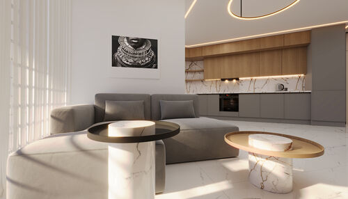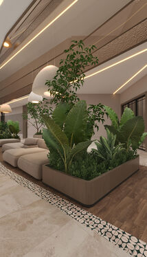Each apartment is equipped with PVC windows, fully fitted kitchen cabinets, porcelain granite ceramic flooring, turnkey bathroom and toilet installations, modern bathroom cabinets, and high-quality interior and exterior doors.