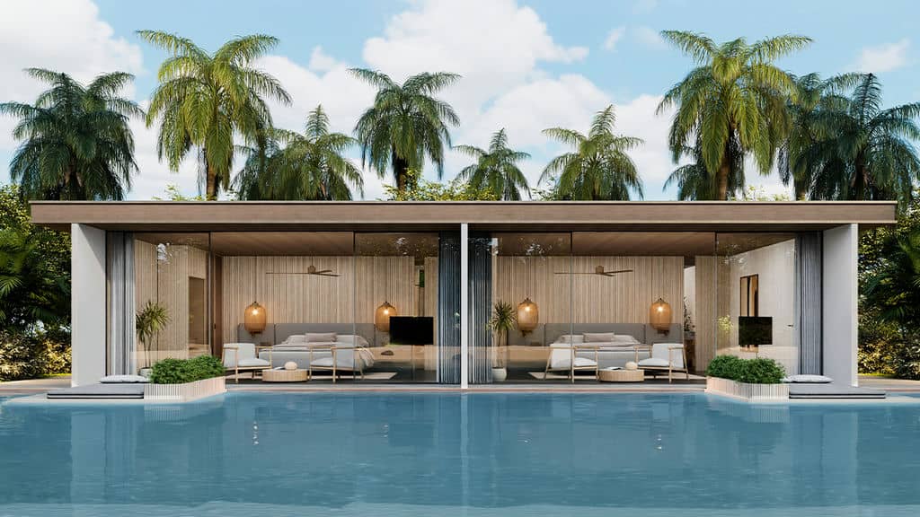 - Amenities include access to a lagoon, outdoor shower, mini bar, and outdoor lounge.