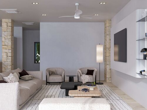 Very low consumption of electricity as the new system of building provides a very high level of isolation. On top of that, the villa comes with a solar panel installation of 10kw that cannot be seen aesthetically, which will provide enough electricity to keep the complete villa climatized. Each floor comes with a potent low consume air conditioning system of 9.000fr from a high quality brand.