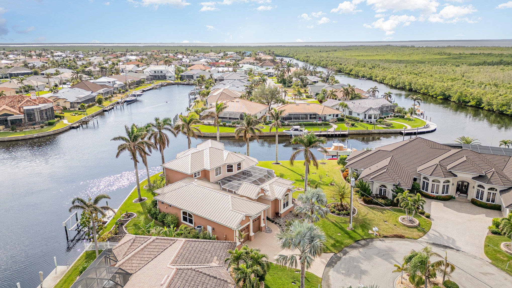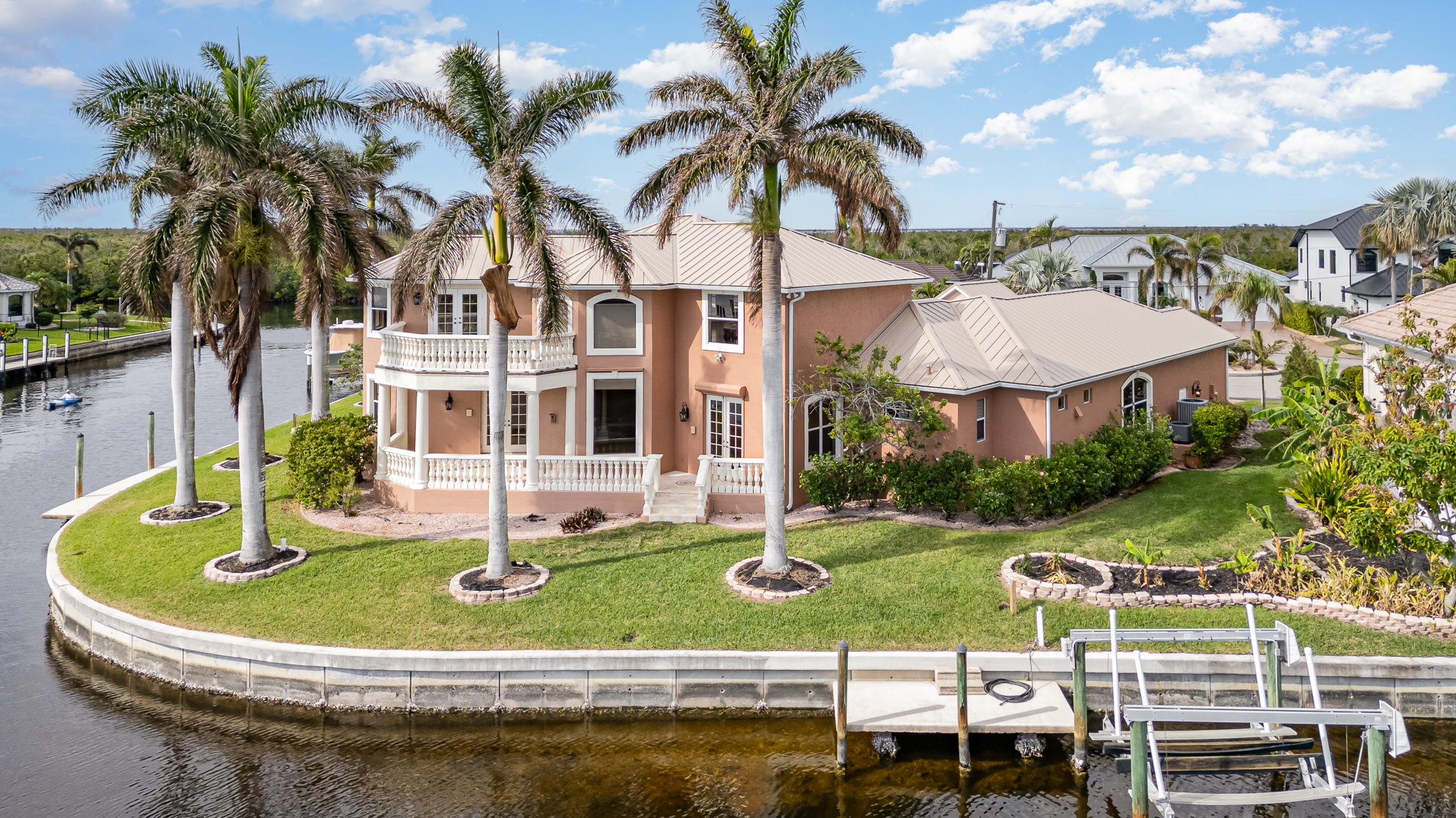 **Luxury Waterfront Home in Punta Gorda, FL** Welcome to your dream home! Nestled on a tranquil oversized tip-lot on a cul-de-sac with over 220 feet of sailboat-access waterfront, this stunning two-story property offers unparalleled harbor-to-gulf access. Boasting 3 bedrooms, 2.5 bathrooms, and a host of premium features, this estate is a true gem for those seeking luxury and lifestyle. Step inside to discover a spacious layout, including a formal dining room, living room, family room, office, laundry room, and a versatile loft. The chef's kitchen is a culinary masterpiece, equipped with commercial-grade gas ranges, dual ovens, a fryer, ice machine, and rice cooker, making it perfect for entertaining. Outside, enjoy breathtaking 180° water views from the balcony or relax by the sparkling pool. Boating enthusiasts will appreciate the two docks, boat lift, and direct sailboat access to the Gulf. A detached in-law suite with its own entrance offers 1 bedroom, 1 bathroom, and a fully equipped kitchen, ideal for guests or multigenerational living. This meticulously maintained home also features a brand-new roof, an attached 2-car garage, and ample space to soak in Florida’s coastal beauty. Whether hosting gatherings or simply unwinding by the water, this property is your ultimate slice of paradise.