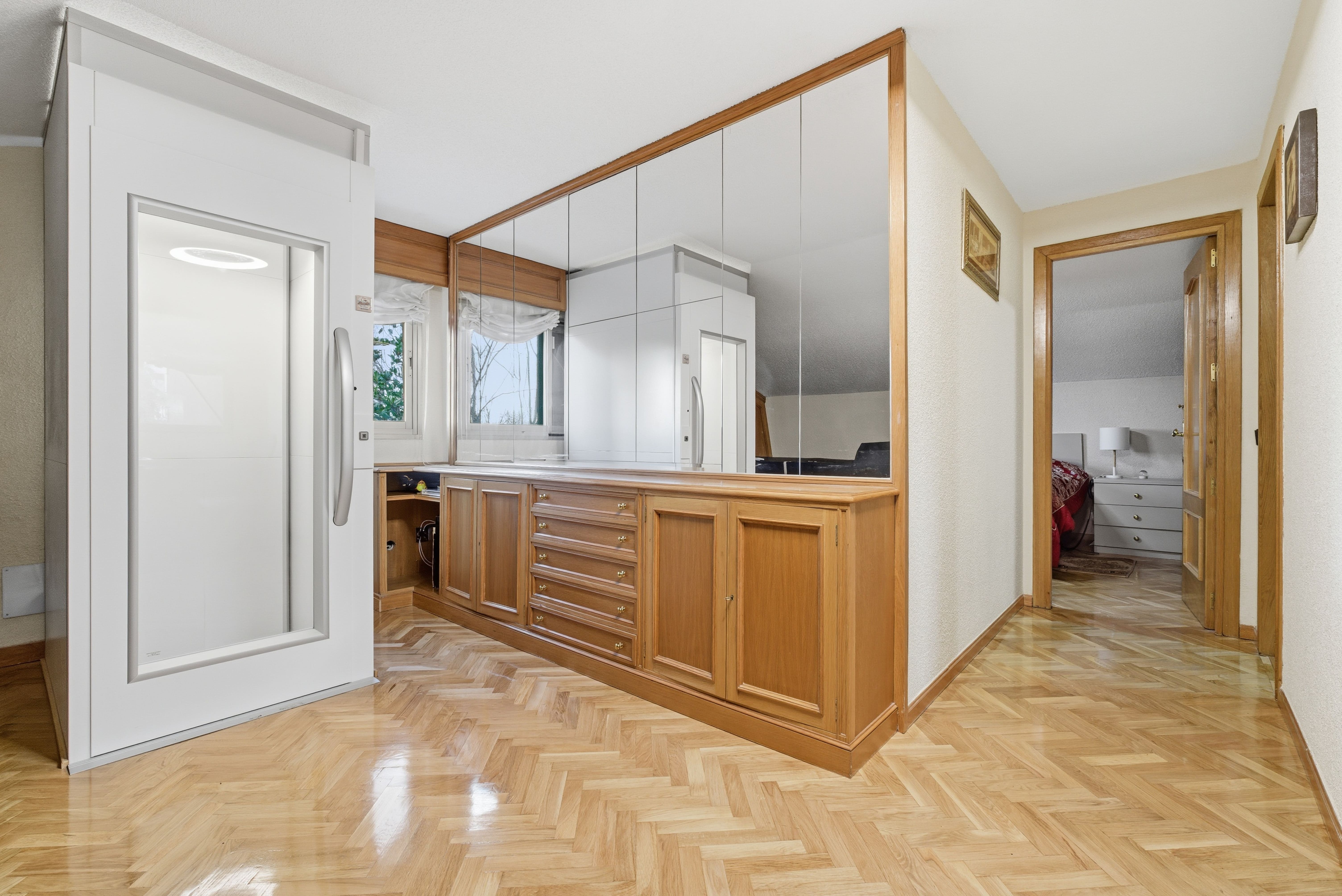Interior lift connecting the three floors