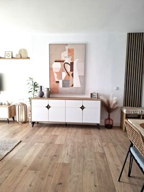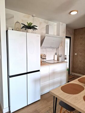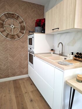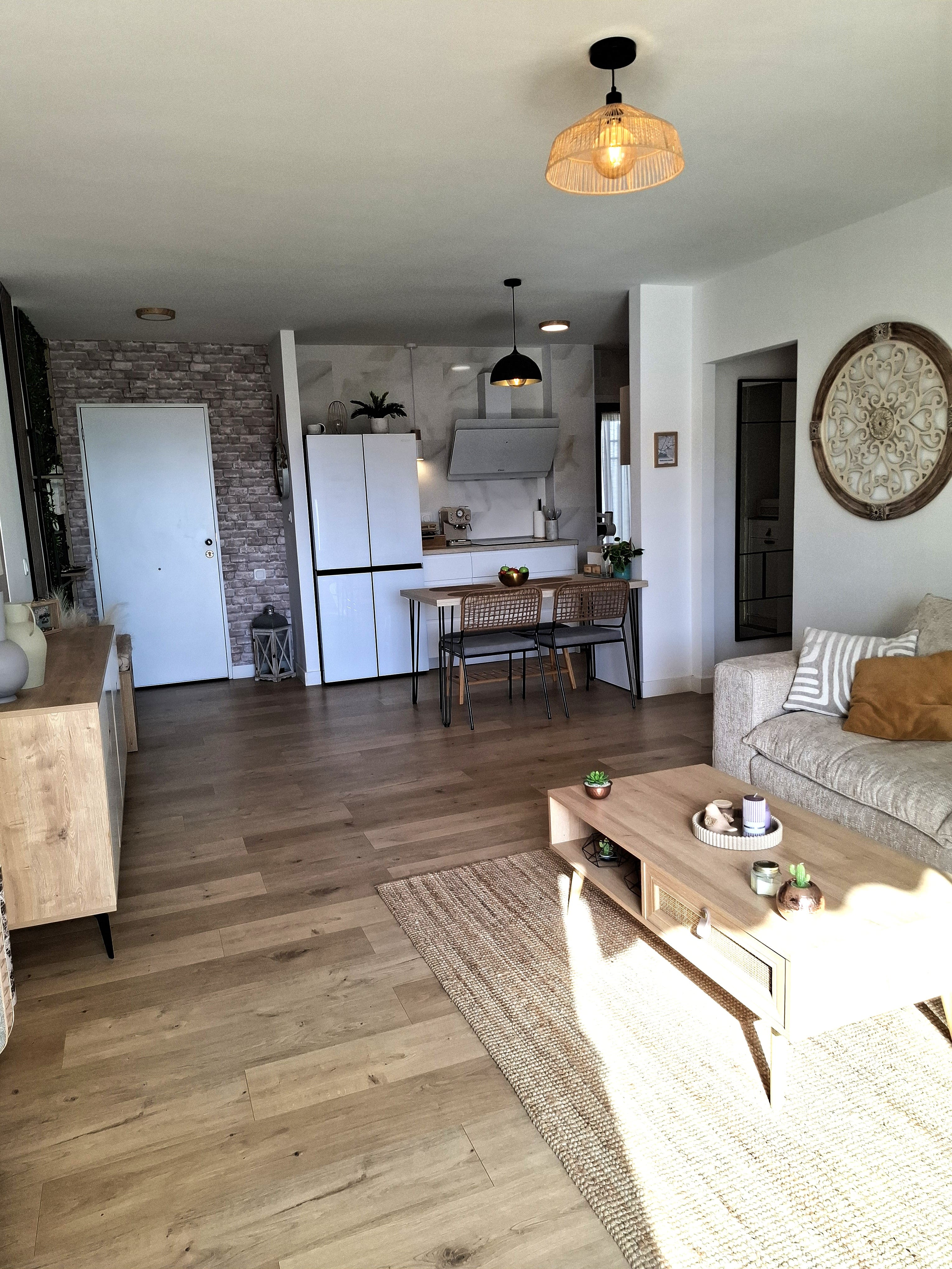 Dispone de cocina integrada al salón con opción a hacer un cerramiento o mantenerla así, cuenta con todos los electrodomésticos modernos y en perfectas condiciones. Desde la cocina se accede a un patio interior con gran capacidad de almacenaje. El salón decorado con muebles de diseño en madera acorde a la decoración de toda la vivienda, además de un gran ventanal a través del cual se accede a un bonito balcón con vistas despejadas.