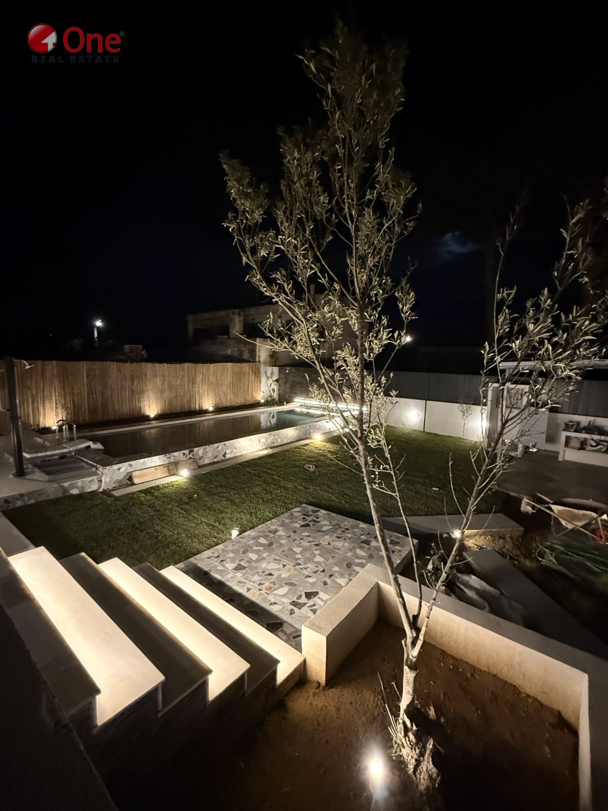 The outdoor area offers a private swimming pool with counter swimming system,, a heated garden shower, a changing room – cabin, an outdoor garden kitchen under a pergola, and an outdoor Jacuzzi for 4 people on the terrace, heated and WiFi-controlled. The large perimeter garden is beautifully landscaped with Mediterranean plants, fruit trees, and lawn, while the expansive terraces on the 1st and 2nd floor provide built-in seating areas, an outdoor dining area, and unobstructed views.