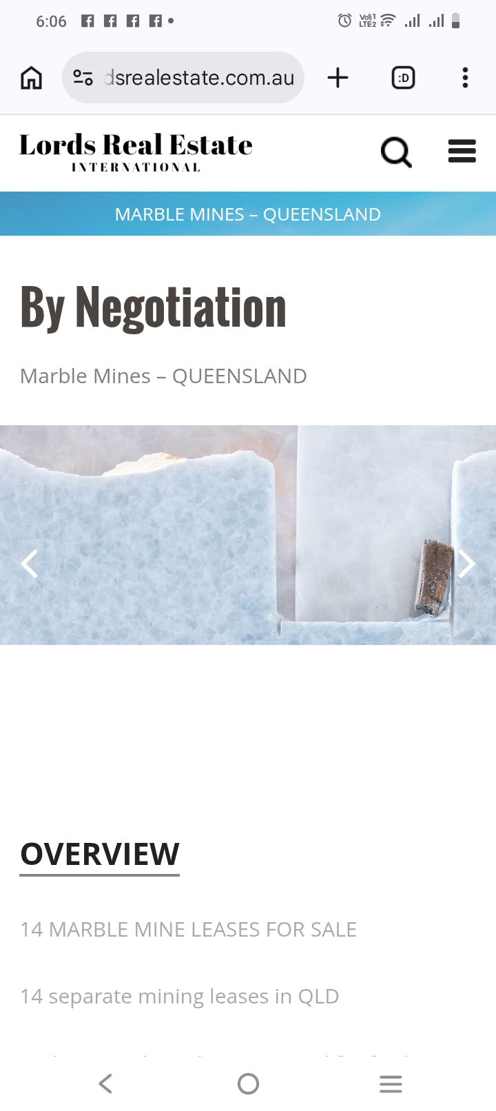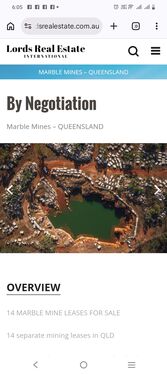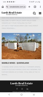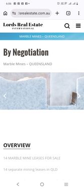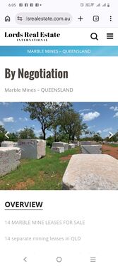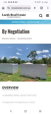 Tenement resource (marble) down to 20 metres is noted on the tenement sheet(Billions of Tonnes) The marble has in fact been drilled to over 100 metres depth so the resource is more than 5 times the stated amount.