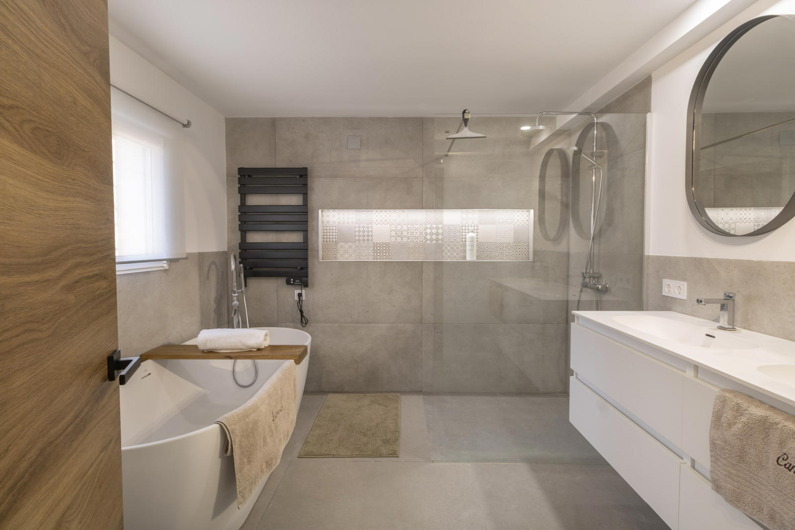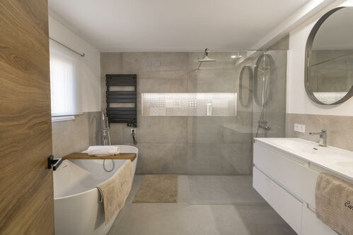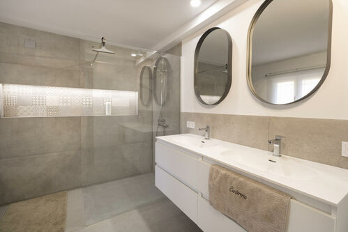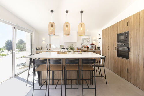 The main house blends the elegance of Mediterranean style with the comfort of modern design. With 189 m² distributed over two floors, it is designed for comfort and enjoyment. It features three double bedrooms and two bathrooms, finished to a high standard and offering a warm and sophisticated atmosphere.