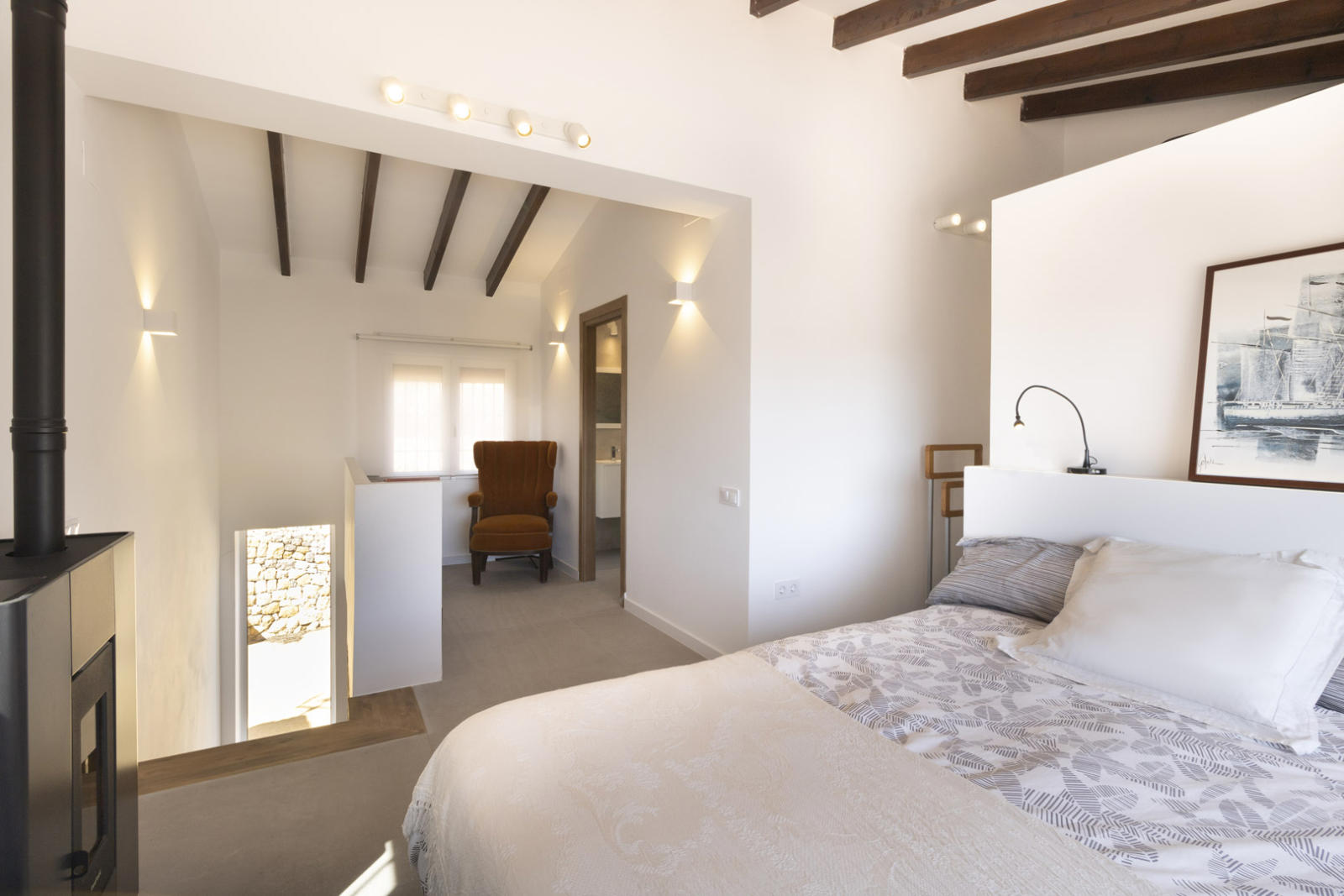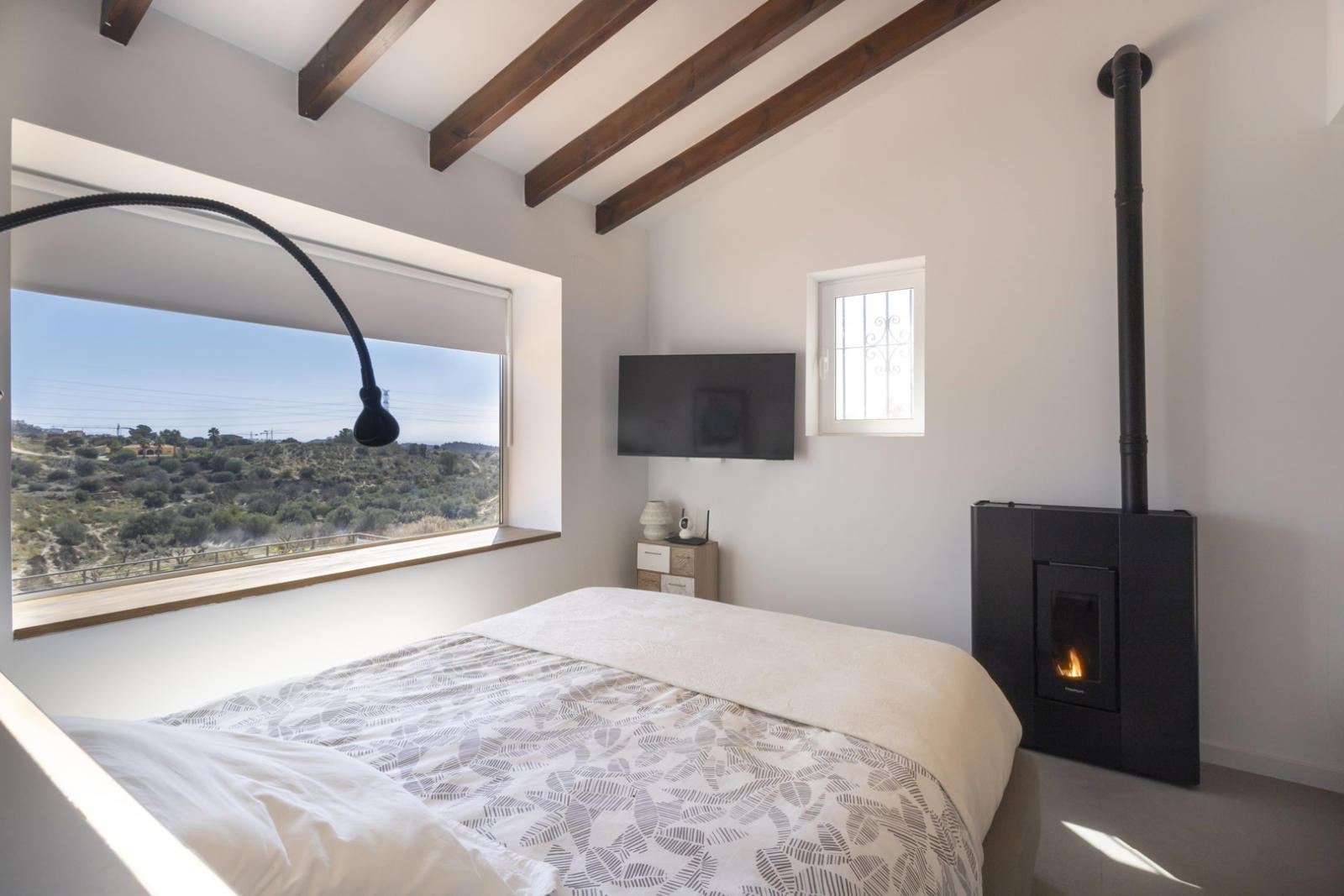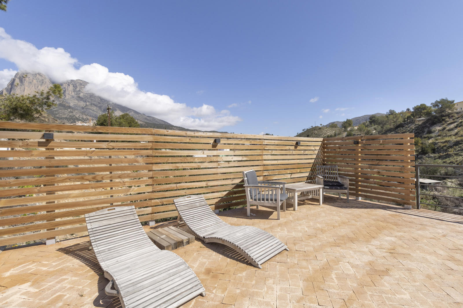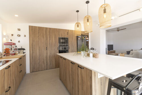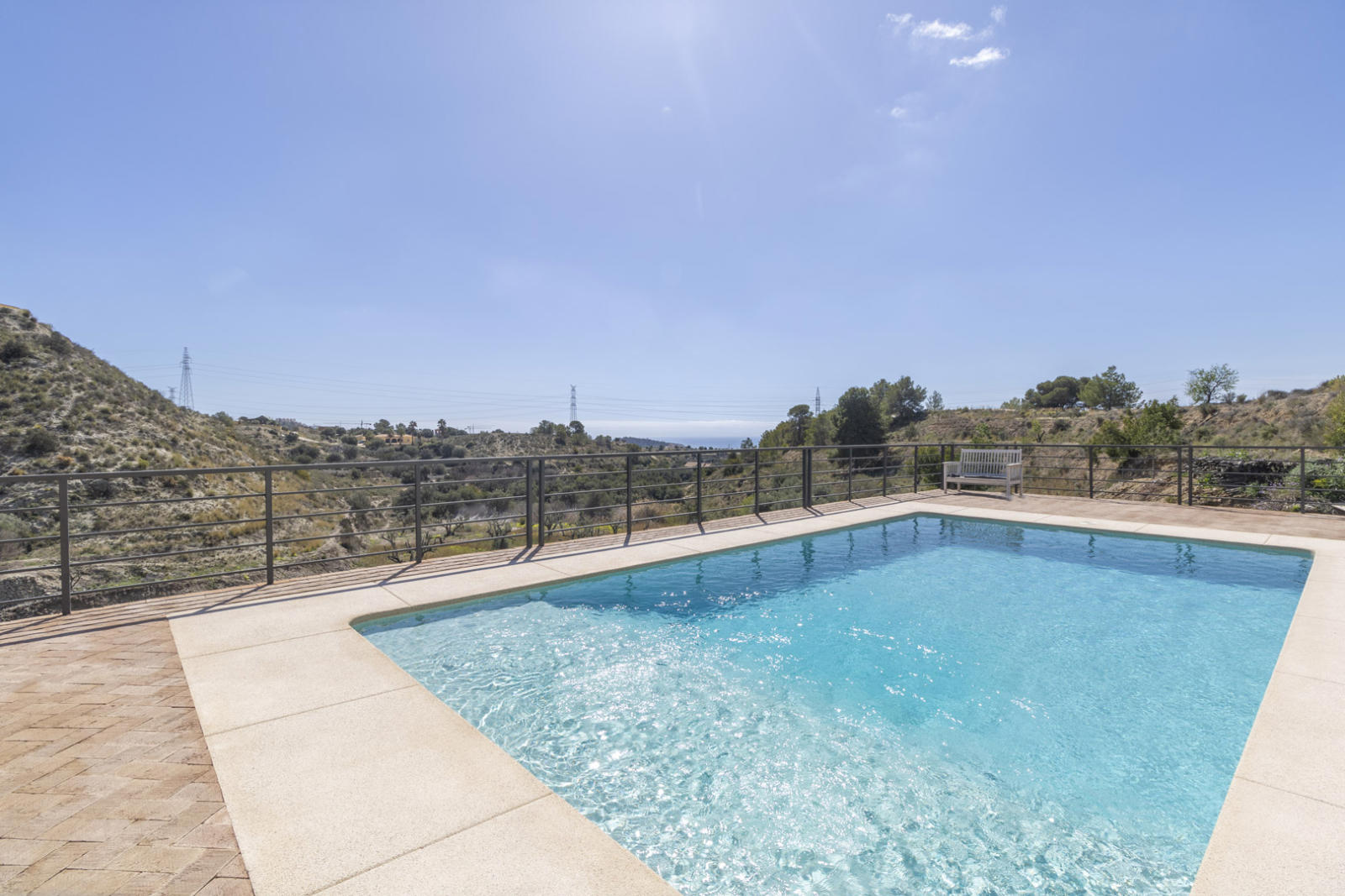 Outside, a large covered porch is the perfect place to enjoy the Mediterranean climate, while the private pool invites you to relax with breathtaking views of Puig Campana. A separate guest house on the property is ideal for hosting visitors with total privacy.