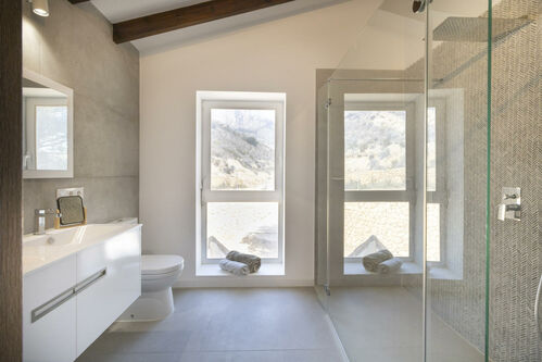 Experience the perfect harmony between contemporary design and nature in this exclusive villa, where every detail has been carefully considered to ensure maximum comfort and enjoyment. Highlights include mains electricity connection, high-speed fiber optic internet, a biological septic system, and a running water supply. The property features smooth walls, grey porcelain floors, and double-glazed sliding glass doors and windows.