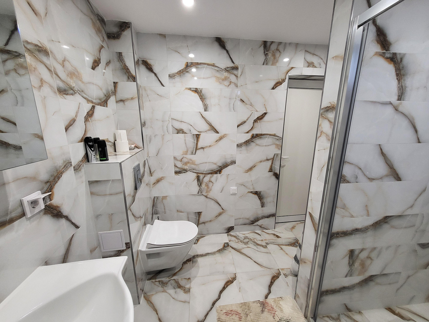 Fully tiled with porcelain stoneware.