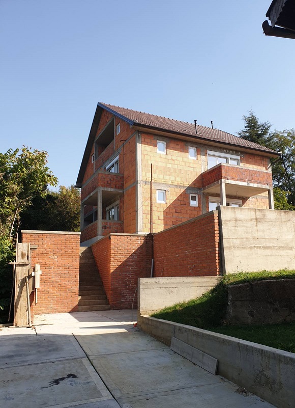 A multi-apartment house for sale in the center of the Vrdnik spa, not far from the Termal Hotel. There are 3 apartments each on the ground floor and first floor. Each apartment has a separate bathroom, a separate kitchen and a separate terrace. There is a 100m2 penthouse in the attic. There are 7 apartments in total. The plot is bordered by retaining walls made of reinforced concrete. Electricity and water were introduced. Tiles were glued in half of the apartments, and tiles were purchased for the other half. Of the rough works, it remains to do the insulation and the facade. Vehicle and pedestrian entrance. Parking for several cars. All works were carried out with the necessary permits from the competent state authorities. Owner +381642236655