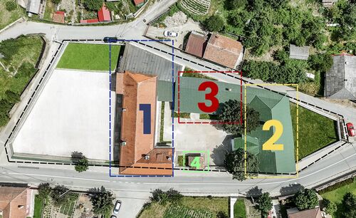 The interior courtyard, through which access is made to the four buildings, is concreted and has green plots that double the contour of the buildings. The property also has a concrete platform that can be arranged to complete the final destination of the building.