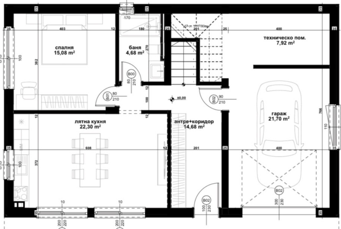 ☑️spacious living room, three bedrooms, summer kitchen, utility room, two bathrooms with toilet, garage;