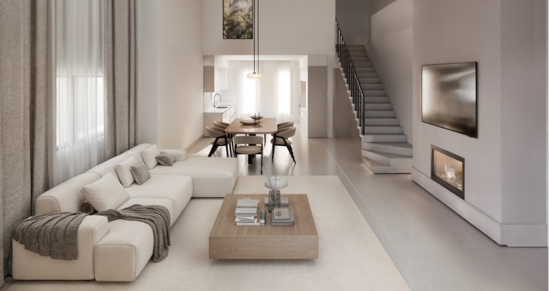The interiors have been designed to reflect the philosophy of contemporary everyday living, with carefully selected materials, elegant details and a balanced combination of light, colors and textures, creating spaces that feel vibrant, calm and welcoming.