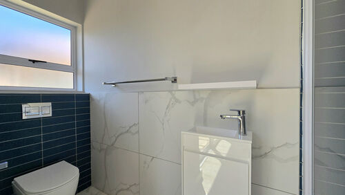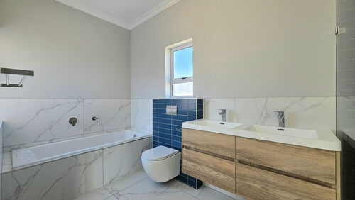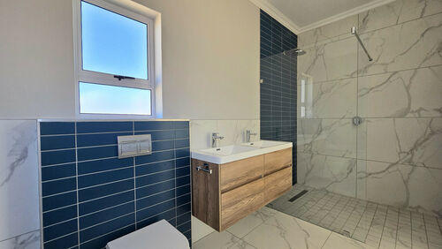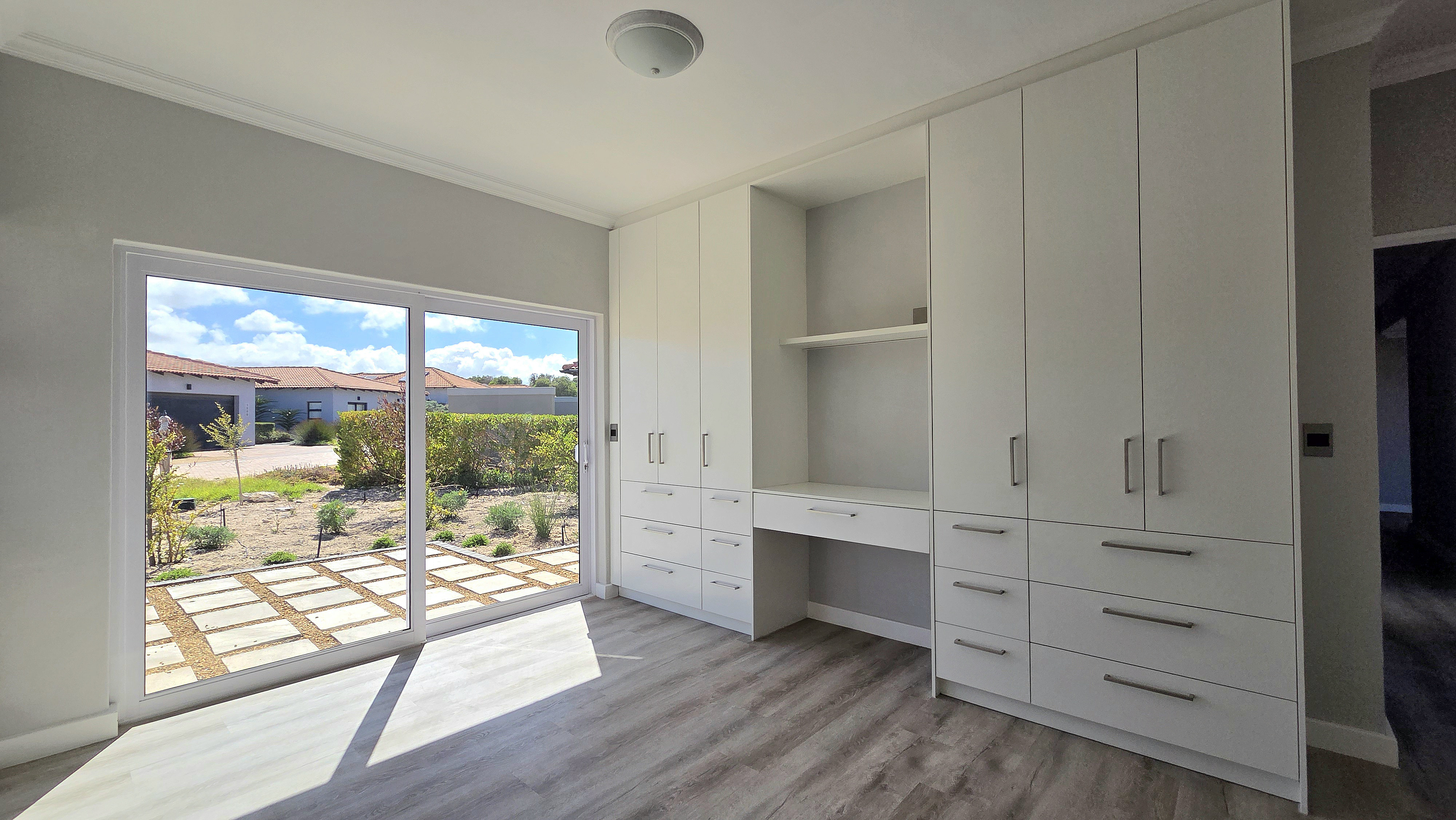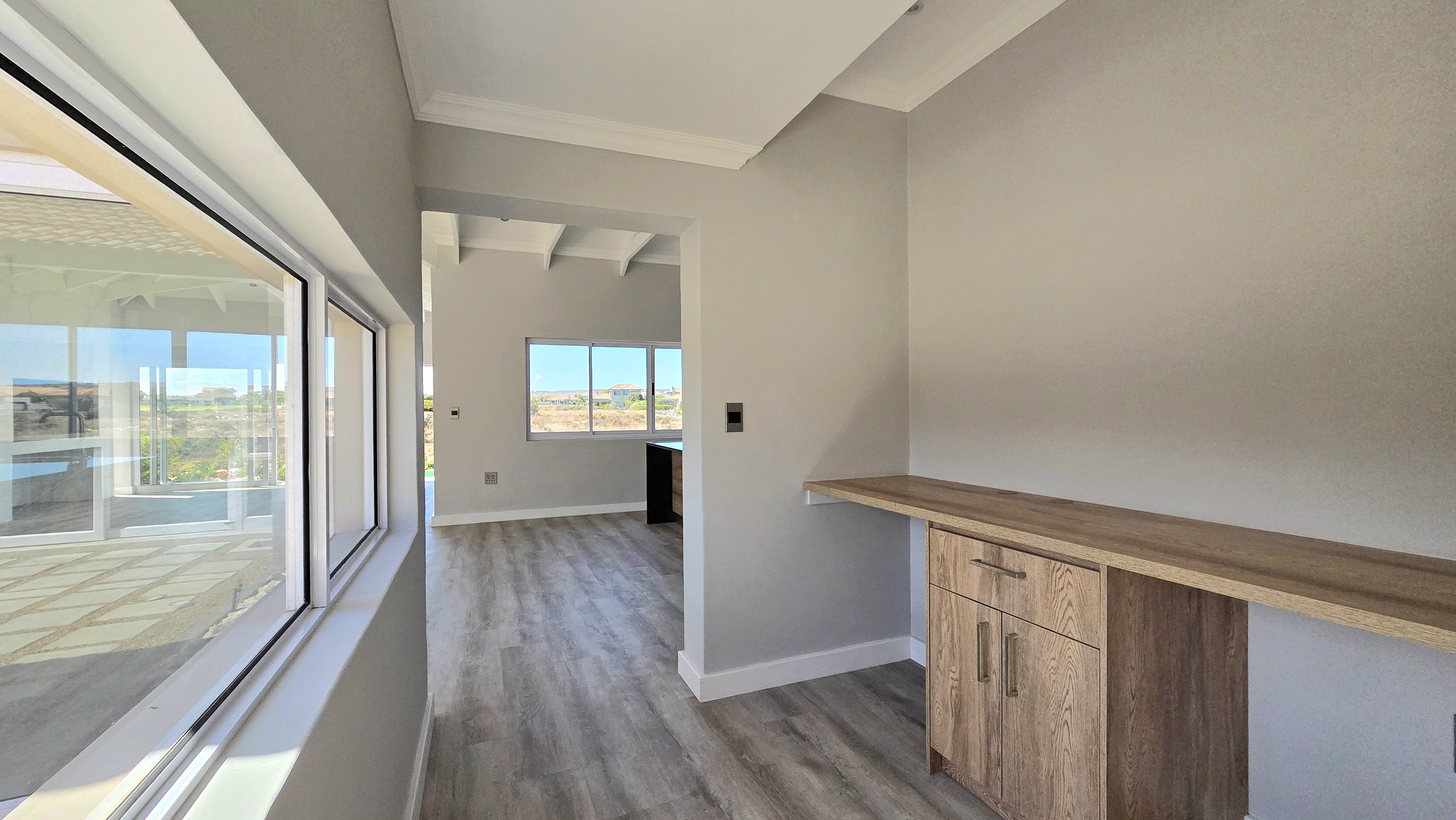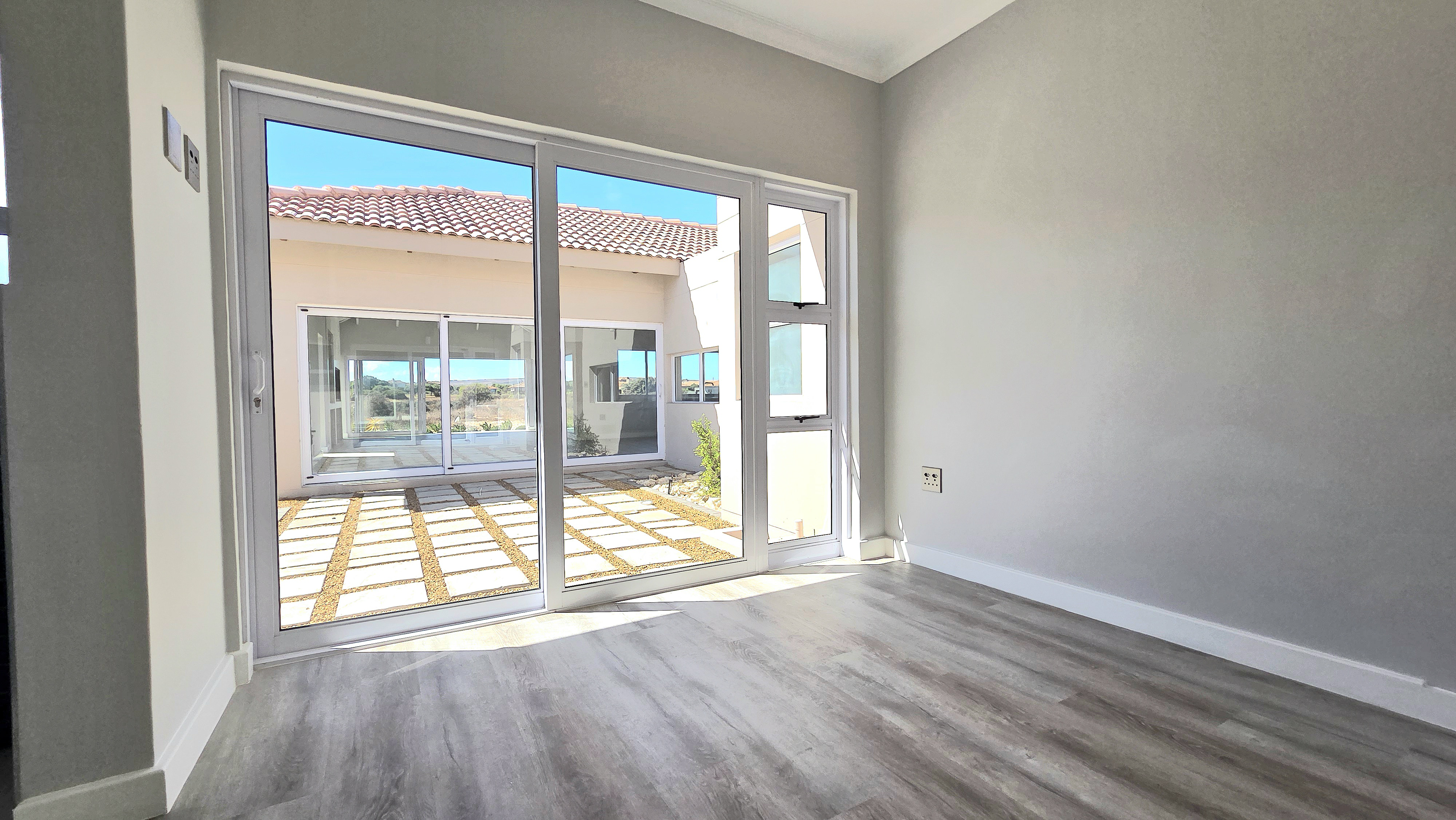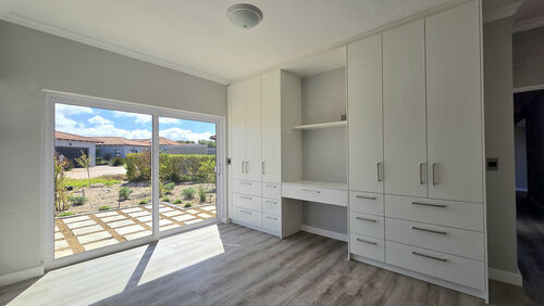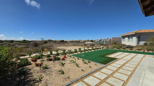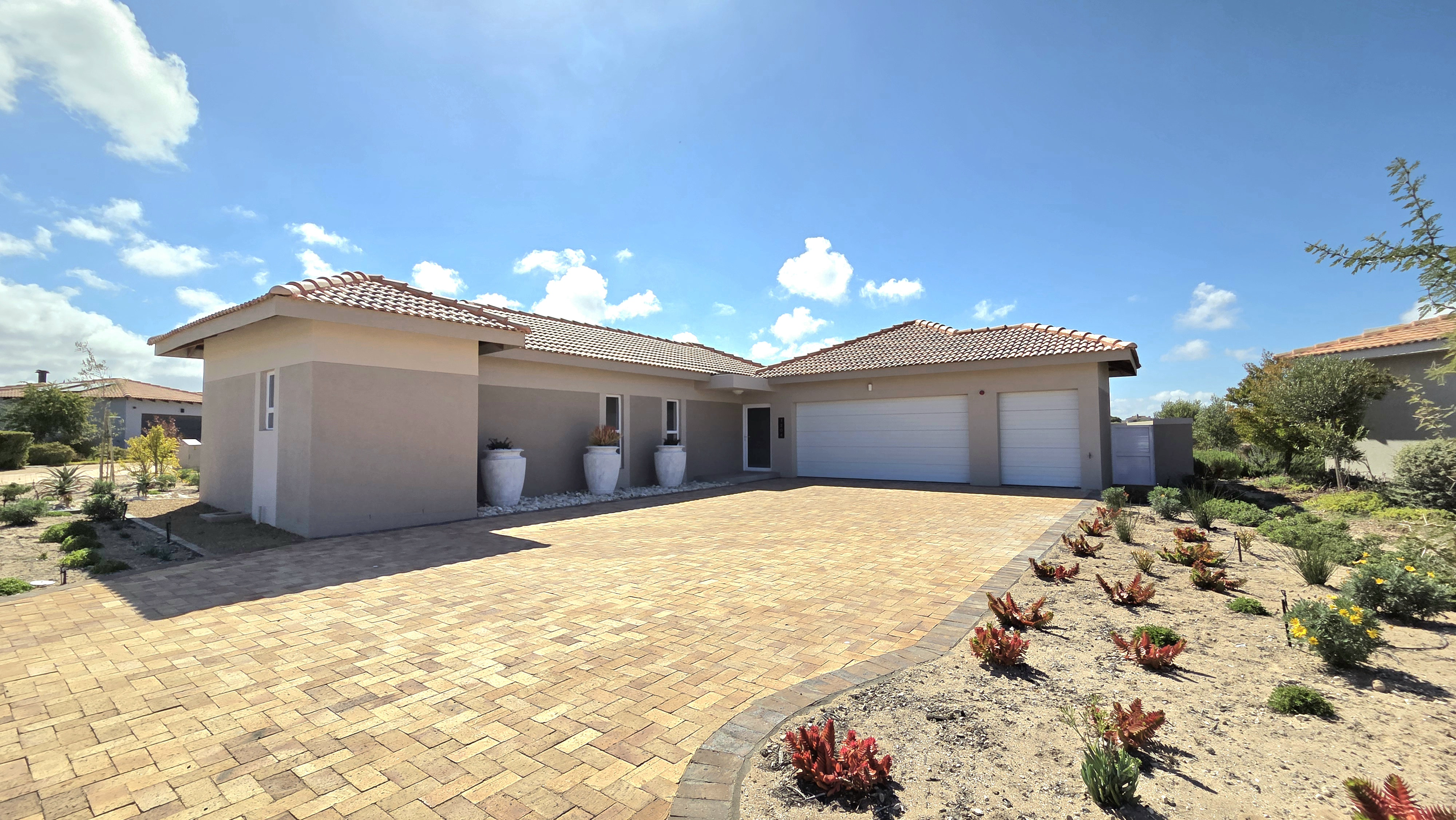Positioned alongside the 13th fairway in the sought-after Langebaan Country Estate, this newly completed 4-bedroom residence delivers modern estate living at its best. The home welcomes you with a light, neutral façade, generous driveway, double garage and an additional golf cart or storage garage.