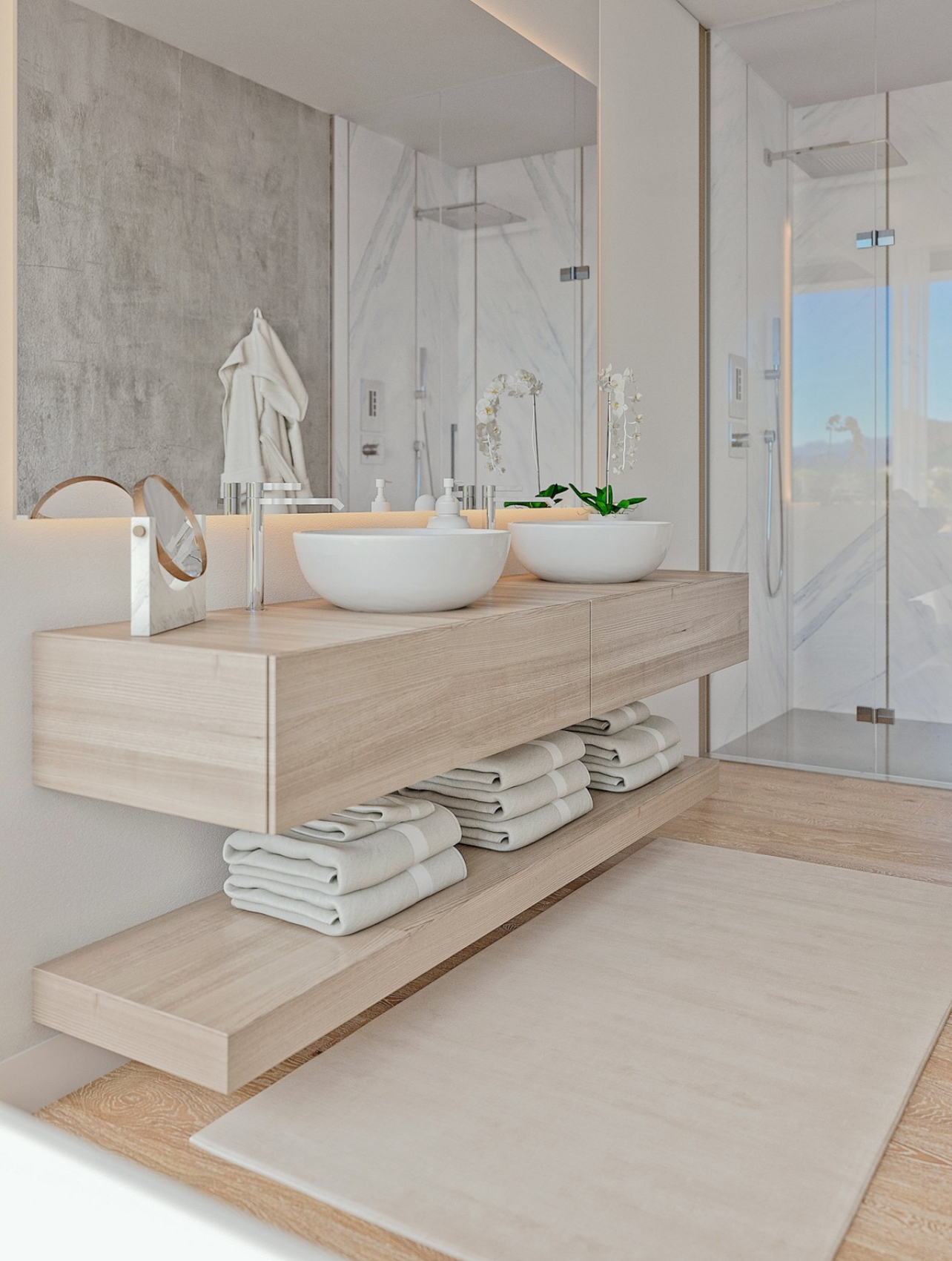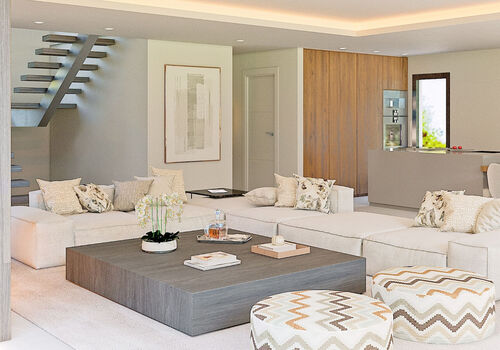 Independent villa, with luxury qualities, avant-garde design, pure lines, neutral colours and large spaces, creating a perfect symbiosis with the natural environment where it is located.
