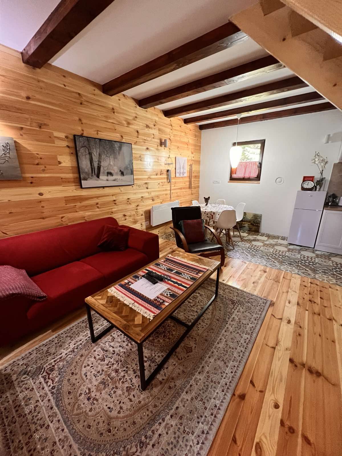 A house of 80 m2, located near the center of Zabljak. This fully equipped two-storey house includes two bedrooms, living room, kitchen, dining room, bathroom and storage room. The interior is equipped with new, quality furniture, using natural and ecological materials, mainly wood.