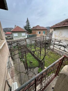 Fully furnished house. house in the village of Devene, Vratsa, Bulgaria. The house is located on the main road of the village right next to the community center and the square. The yard is about 600 sq. meters, and the house is two-story, with one floor being about 70 sq. meters. The first floor consists of an entrance hall, a corridor, one bedroom and one kitchen + 2 bedrooms and a bathroom. The second floor consists of a corridor and 2 bedrooms + a terrace. The house is fully furnished, with the bedroom on the first floor after cosmetic renovation, as well as the bedroom on the second floor. In the yard there are additional buildings such as a garage, a summer kitchen, which is quite large and in okay condition. Inside the yard there are farm buildings where animals were kept and can be seen from the photos. The house does not have an internal toilet, only an external one at the end of the yard.