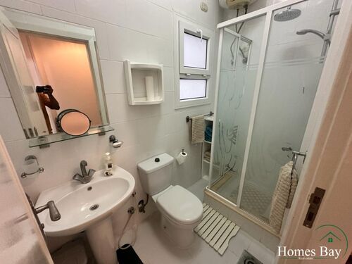 In total you have 2 bedrooms, an open kitchen, a bathroom with shower and daylight bathroom, and a living room with access to the balcony with a wonderful pool view.