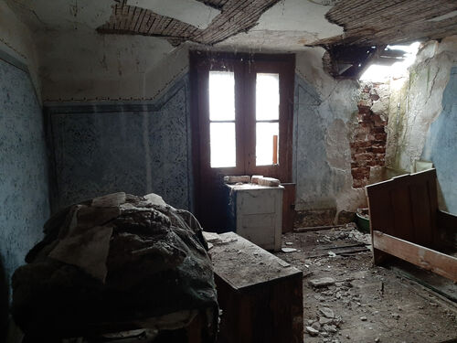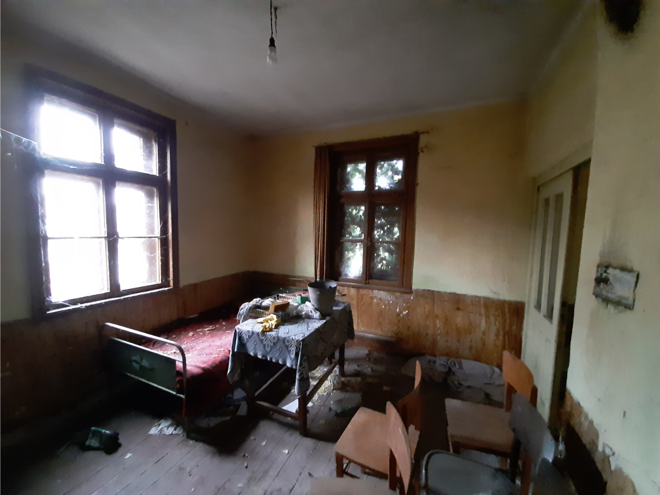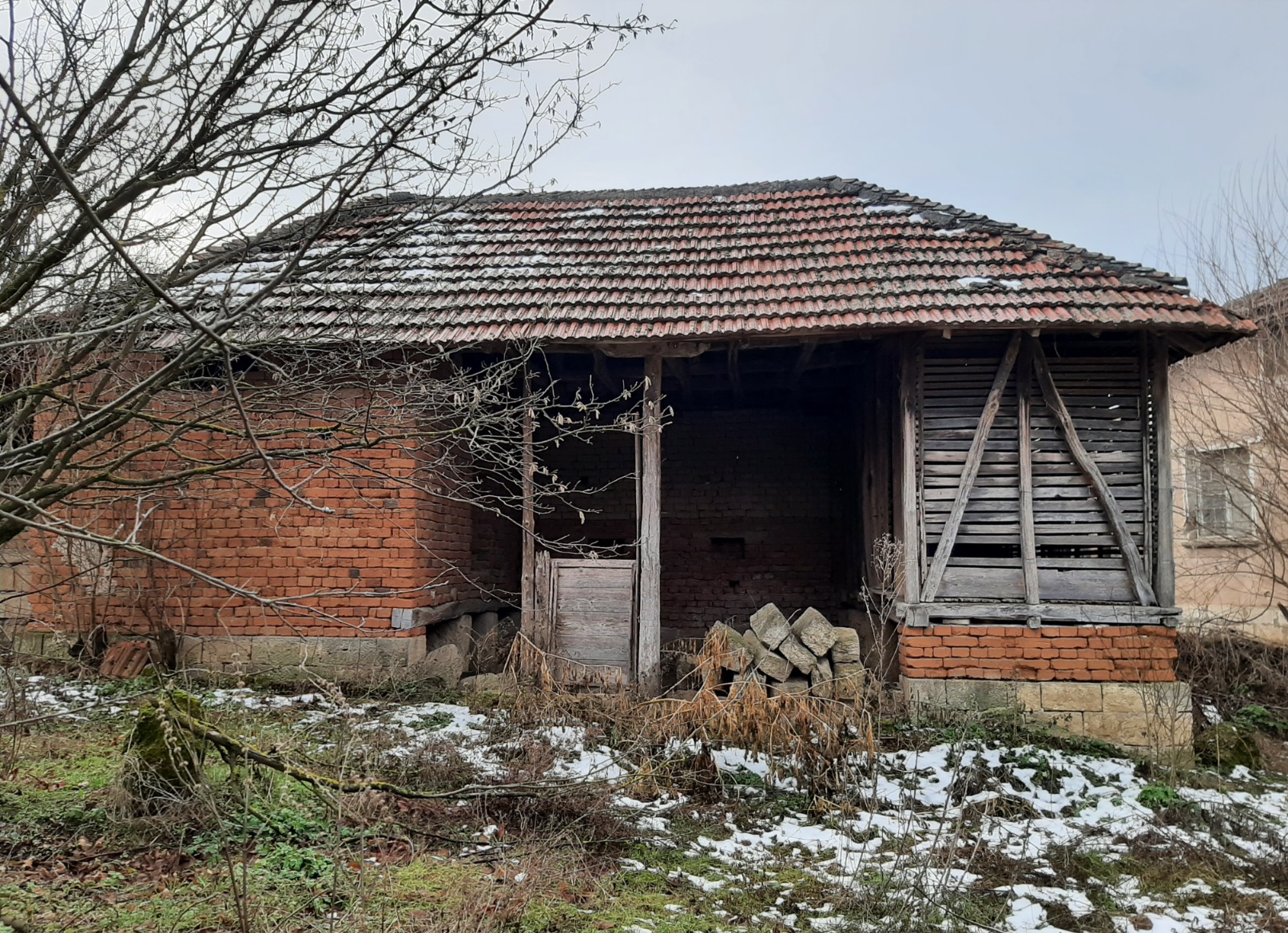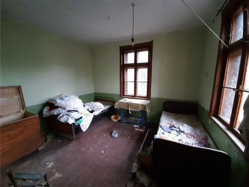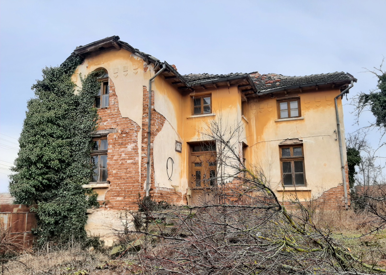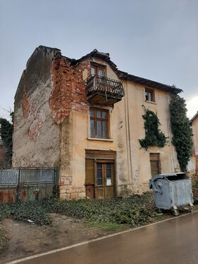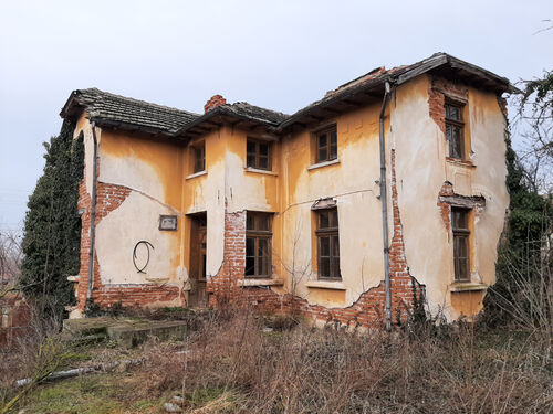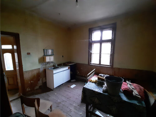 Rural property with two houses, barn, land and good road access situated in a big village near river 55 km north of Vratsa, Bulgaria. The main building is an old house with interesting architecture and history dating back to the early 1930s. This once fabulous structure was built as a private home in the early 1930s and belonged to one of the richest people in the village – a wealthy land owner with lots of workers and cattle. After his death the building was donated to the local state farm and it served as the farm`s main administrative office until the early 1990s when the farm went into bankruptcy. For almost three decades this beautiful structure belonged to various administrations, banks and persons until it was purchased by the current owner who had plans to restore it completely and move his business here but is currently experiencing financial difficulties and is eager to sell the place to someone who would be able to bring the building back to its old glory. The house has three levels connected via solid internal wooden staircase. The ground floor has three premises. You can enter this floor from the level of the street passing at the front of the building. From here one enters into a big room which served as waiting hall and reception desk. There is another premise to the right from here which was a small office for daily activities and meetings. Through the corridor on the ground floor you can get to the stairs or to a big room located at the back – this was the storage. The second level can be accessed from the stairs on the inside as well as from the yard through a backdoor. Here one can find living room, kitchen, corridor an another premise used as dining area. Going over the internal stairs leads you to the attic floor which provides three bedrooms and corridor. One of the bedrooms has a small balcony facing the street and providing nice overview at the surrounding area. The second house is located not far away from the main building. This structure has one level and consists of three premises – big living room with kitchenette and dining area, one bedroom and premise for bathroom. There is also a covered porch in the front section of the house. Just like the main building this one also requires good amount of time, money and labour to be invested in it in order to bring it back to its once good and usable state. Opposite the small house is the barn. This structure is with the size of the second house and can be converted into living space but so far it was always used as storage for various items. Near the barn is the driveway which provides access to a quiet side street so the property can be entered by a vehicle from two different spots. The main entrance is located at the main street passing in front of the building and is suitable for big vehicles e.g. trucks, tractors, diggers, forklifts, delivery vans, etc. The second entrance from the side street is good for cars and lighter, smaller vehicles. The property has running water and electricity which for safety reasons are currently disconnected but can be restored easily. There is also a fresh water well in the yard. The property is situated on a street in very good condition and is about 150 meters away from kindergarten, shops, café-bar, post office, the mayor`s office, bus stop, ATM. There is a big river passing near the outskirts which is about one kilometer away from the house. Near its banks you can have a picnic, you can go camping, hunting and fishing or just admire the scenery. The village has good bus connections to the seat of the local council which is in the next village. There one can find construction material stores, police station, doctor, fire department, school, pharmacy, gas station, car wash, book store, library, etc. The regional capital city Vratsa is about 45 minutes away from here while the national capital Sofia and Sofia Airport are within about two hour drive. Interesting rural property up for sale.