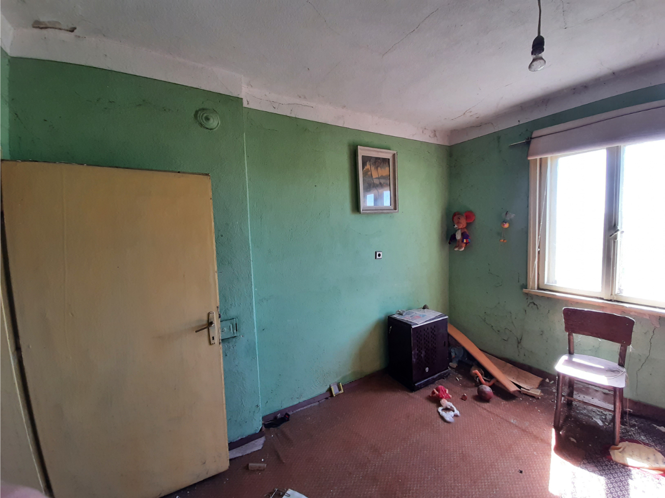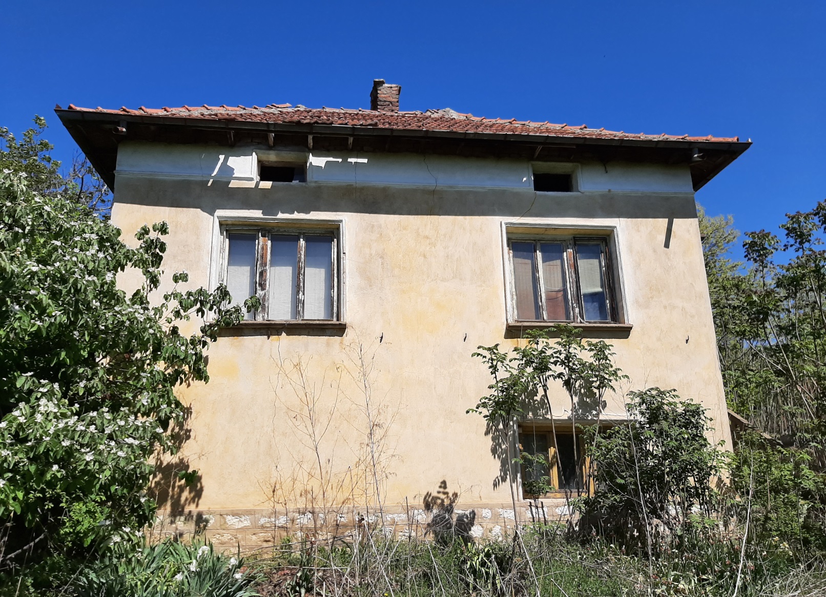 Old country house with plot of land and nice views situated in the outskirts of a big village 50 km away from the City of Vratsa, Bulgaria. The property consists of a nice well sun-lit plot of land and an old house with one floor and small sublevel. The building consists of balcony, corridor, common room, closet and three additional premises. There is one more room situated on the semi-ground floor beneath one of the bedrooms and the corridor. The lower section of the house has separate entrance situated under the terrace at the front side of the building. The property is located on a hill in the outskirts of the village about 10 minutes away by foot from the center. There are other properties around but many of them are empty or are being used only seasonally so the house provides lots of peace and quiet. It also comes with a good plot of fertile land. The location of the house provides nice views towards wide open fields and hills in the vicinity of the village. As the property had been empty for many years now it certainly requires some renovations and a good clean up as well as proper care. The nearest shop is about 10 minutes away by foot from here. At roughly the same distance one can find café-bar, school, the local mayor`s office, the post office, public park, kindergarten, bus stop, church, construction material store, etc. The village is situated about 10 km away from the nearest town which is also the seat of the local council. There one can find farmer`s market, hospital, library, various administrative services, police station, gas stations, car service stations, cinema, shops for electrical appliances, furniture, clothes, shoes, banks and ATMs, sports grounds, gym, swimming pool, schools and kindergartens, pharmacies, dentist, etc. The village has direct bus links to the town, the regional capital city Vratsa and the national capital Sofia. Cheap country house with land, nice views and quiet location.