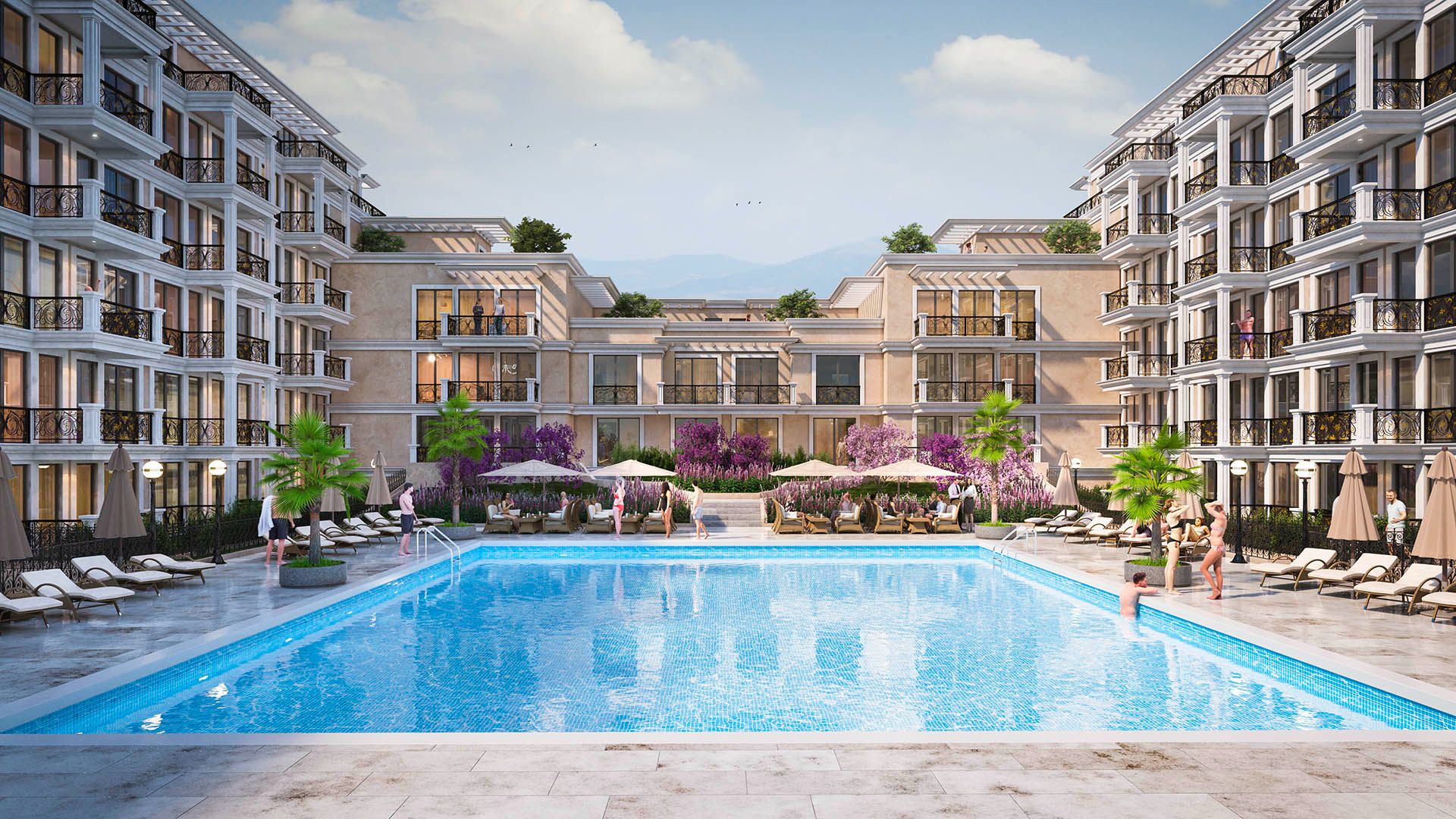Residents and guests can enjoy a range of amenities, including an outdoor swimming pool for adults with a children’s section, elevator, sunbathing and relaxation areas, beautifully landscaped gardens, a children’s playground, controlled access, 24-hour security with video surveillance, and parking. The annual maintenance fee is 12 €/m².