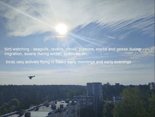 Beautiful Visaginas town, surrounded by forests and lakes (clean and not deep, warm as a tea in the summer for swimming), foxes, rabbits, mooses and deers. Recreational activities, horse riding, kayaks, fishing, skiing, hiking, berry and mushroom picking. Restaurants, public hospital and private medicine centers, Swedbank, vet, cinema, post office and so on, new bus station. A bus runs around town every half an hour, a bus stop is right beside the house, the train station 3 minutes by car, there is a direct train to the capital Vilnius, multiple times a day, from 5am to 7pm. An apartment house has 9 floors, this flat is on the 8th floor and is very warm in the winter, has a balcony, separate kitchen and bathroom, car space (visible down through the window). People here speak Lithuanian and Russian, the youth speak English, we also have some Indian people living here. The town has about 18 000 inhabitants, in the evening is very charming and almost empty, very safe, you can go anywhere in the middle of the night alone. People are friendly, respectful, and very helpful. Kindergarten by the other side of the apartment's house, which is located in the city center, Lidl is 3-minute walk. Multiple shops (up to 11 food stores including XXL sized, which you can see on google maps. The bills are low, only 5-10eu a month for electricity, 15-25 for water, central heating in winter depends on the weather, can be 15-40eu per month, free wifi 24/7 in the square where is Lidl.