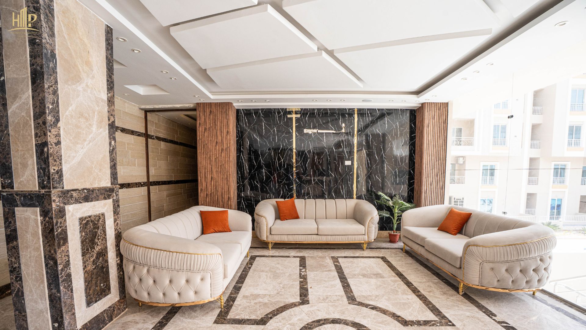 Landscaped green spaces: 2,000 sqm inside and 5,000 sqm in front of the compound