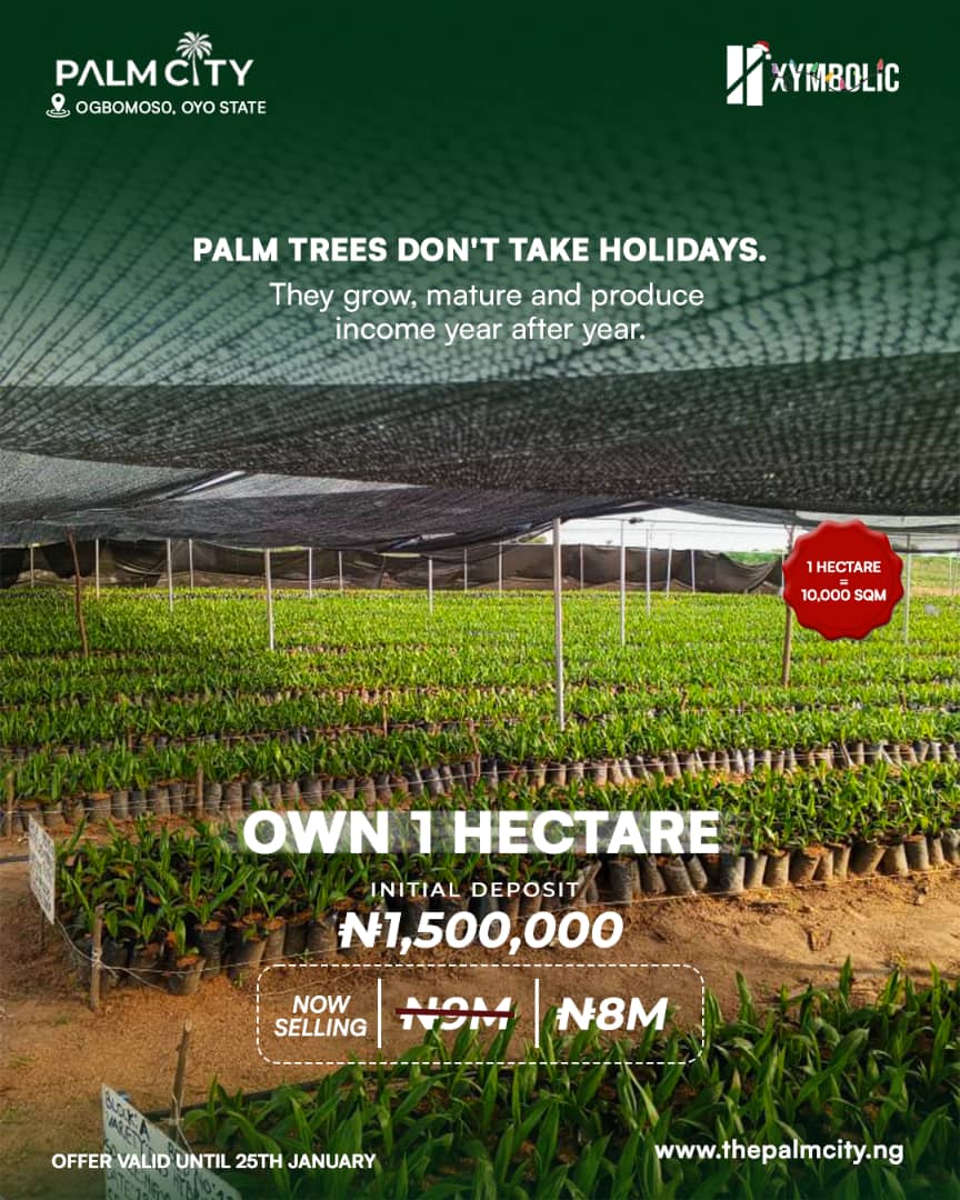 ✅1 hectare = 10,000 sqm instead of 9000 sqm at Palm City Agurenge (Iseyin-Saki)