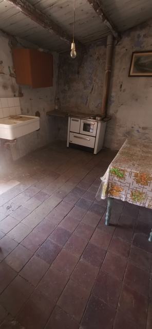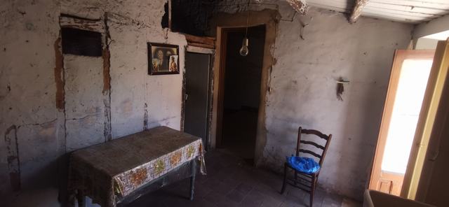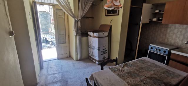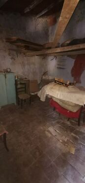 The house comprises three floors, each approximately 38 square meters in size, for a total of 114 square meters. On the ground floor, there is a room, a passageway, and a rustic bathroom under the stairs. On the first floor, there is a room, a passageway, and a panoramic balcony overlooking Via Roma and Monte Calvario. The second attic floor consists of two adjoining rooms and a small room behind the entrance hall. The front entrance hall opens onto the balcony.