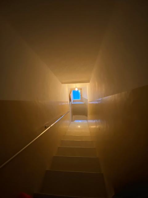You enter into the ground level bed room or storage room, comprising washer/ drier and bathroom with shower.