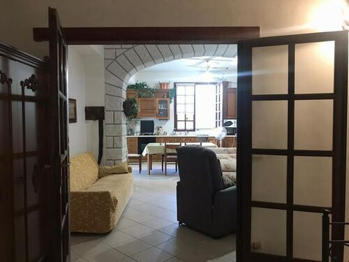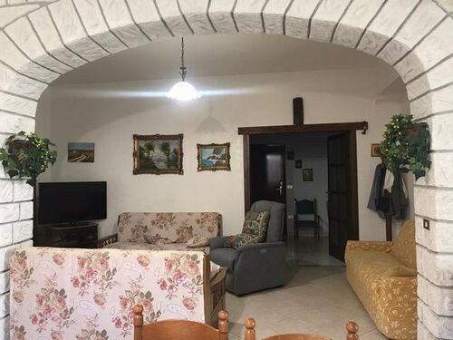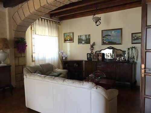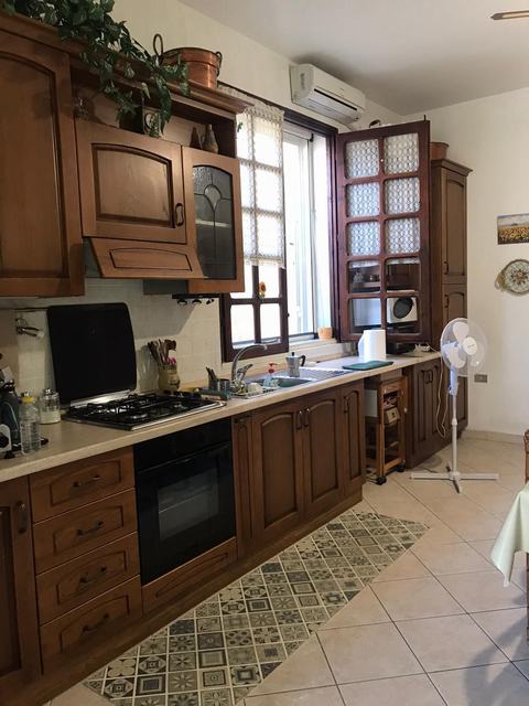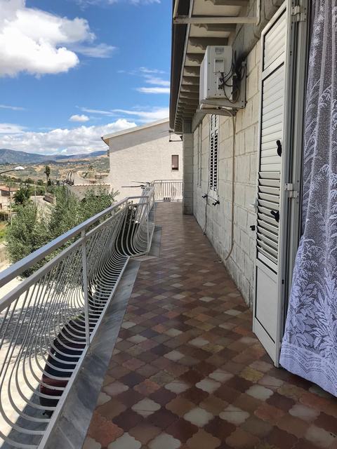 ndependent house of about 300 square meters in Via Don Luigi Sturzo (Cda Marullo) with a panoramic view over the valley to the sea. The outside area of the house is extended in about 300 square meters and is intended for parking and garden. The ground floor is divided into a dwelling and consists of three rooms and a bathroom and porch covering an area of about 100 square meters, and a garage of about 100 square meters in a rustic state. On the first floor there is a self-contained apartment of 100 square meters consisting of five rooms including kitchen, two bathrooms, a granite staircase with two flights and panoramic balconies.
