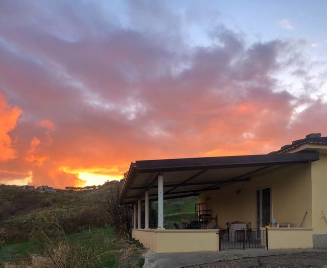 Must see Sicilian Villa perched on a hill with 360 degree unspoiled views and only a 25 minute drive to long pristine white sand beaches, with excellent affordable restaurants and cafes. In the southernmost of the Sicilian provinces, with everything you could want from nature and cultural experiences at your fingertips. The house has been completely renovated in 2018 and is ready to move into fully furnished in contemporary Scandinavian style. Included is also the original builder’s rustic and elegant “baking table” which had been a centerpiece in Cianciana’s fine bakery for generations. The 60 sqm are well distributed, and include kitchen / dining room, bedroom, shower, separate toilet. The covered terrace of 60 square meters is prepared for the installation of two - three additional rooms. The quality Scandinavian kitchen includes: Granite counter top. Large gas stove, extractor hood. Dishwasher. Refrigerator / freezer, Washer and Dryer. Brand new UHD 4K Samsung TV and two recently installed heater/AC units. On the ground there is a metal shed of 15 square meters and a stone house of 5 square meters which can be expanded and