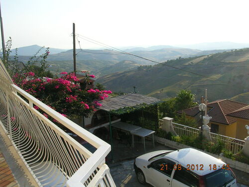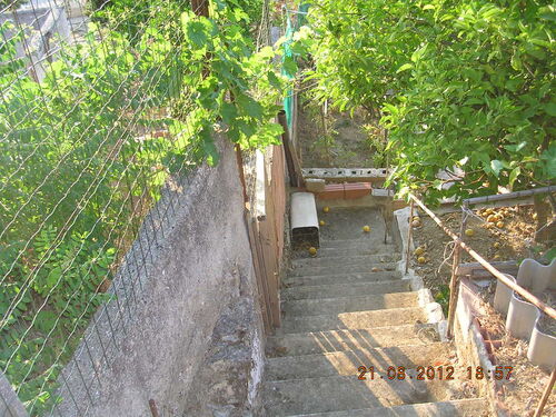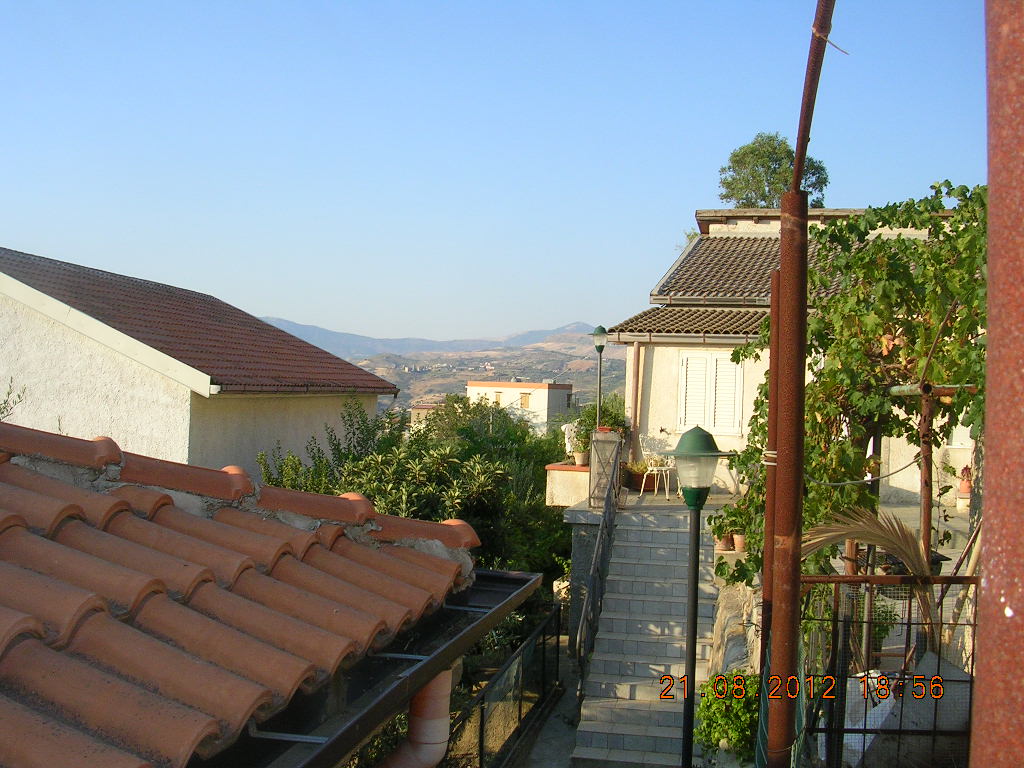 Independent house of about 300 square meters in Via Don Luigi Sturzo (Cda Marullo) with a panoramic view over the valley to the sea. The outside area of the house is extended in about 300 square meters and is intended for parking and garden. The ground floor is divided into a dwelling and consists of three rooms and a bathroom and porch covering an area of about 100 square meters, and a garage of about 100 square meters in a rustic state. On the first floor there is a self-contained apartment of 100 square meters consisting of five rooms including kitchen, two bathrooms, a granite staircase with two flights and panoramic balconies.