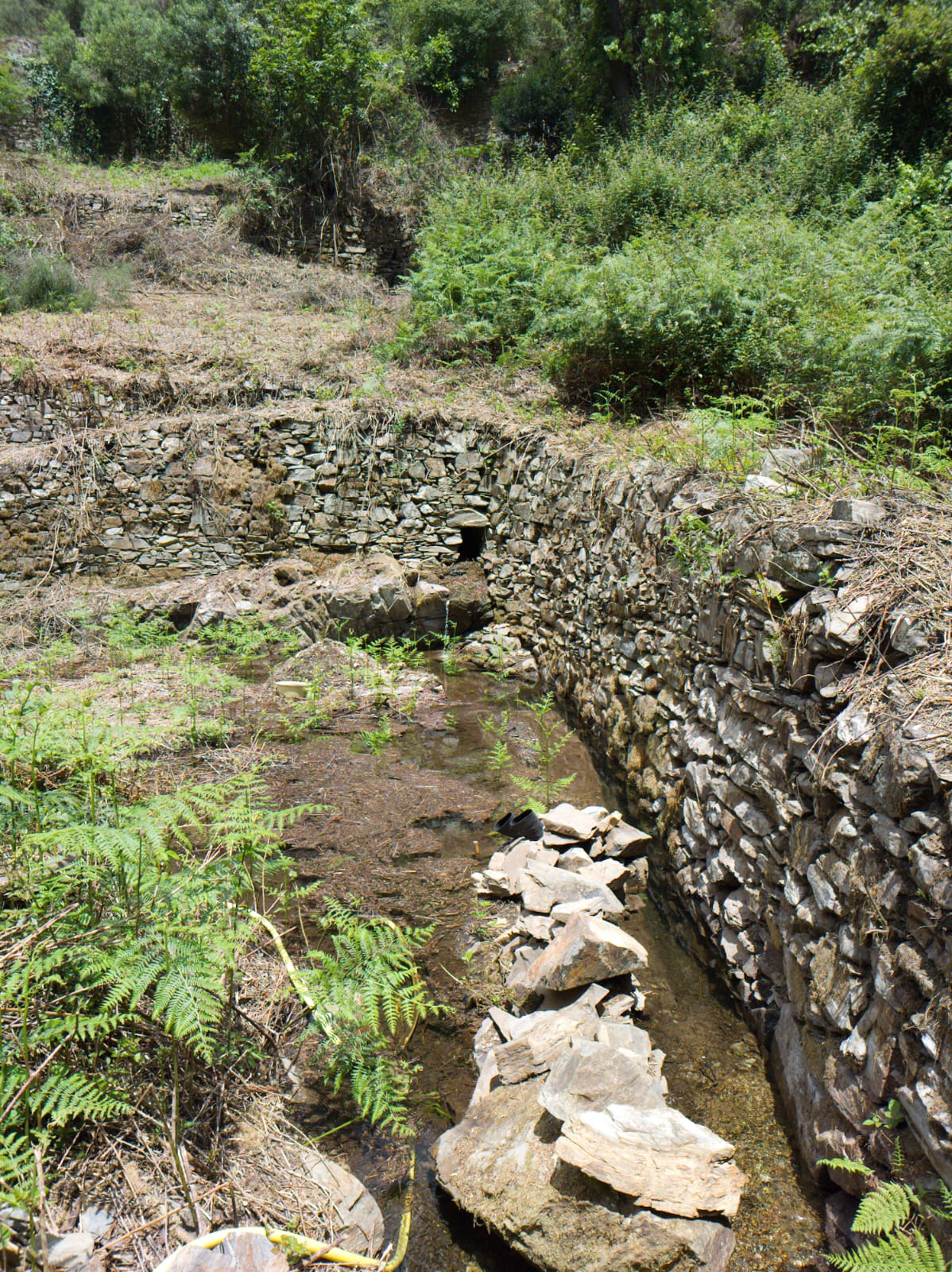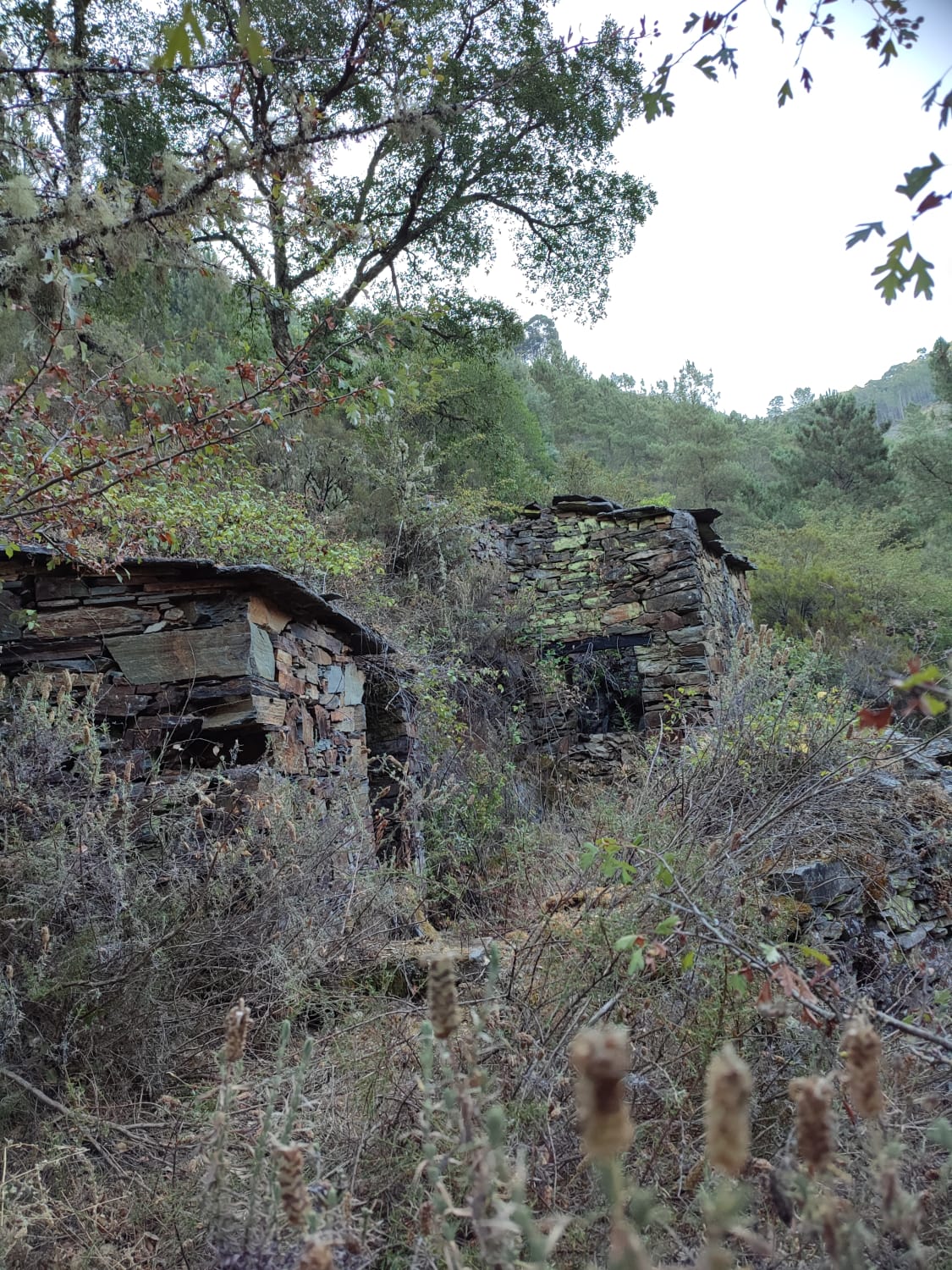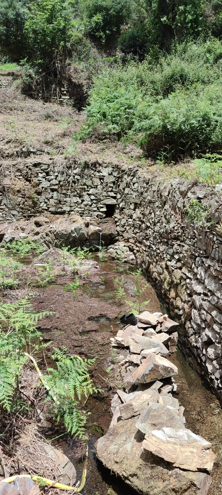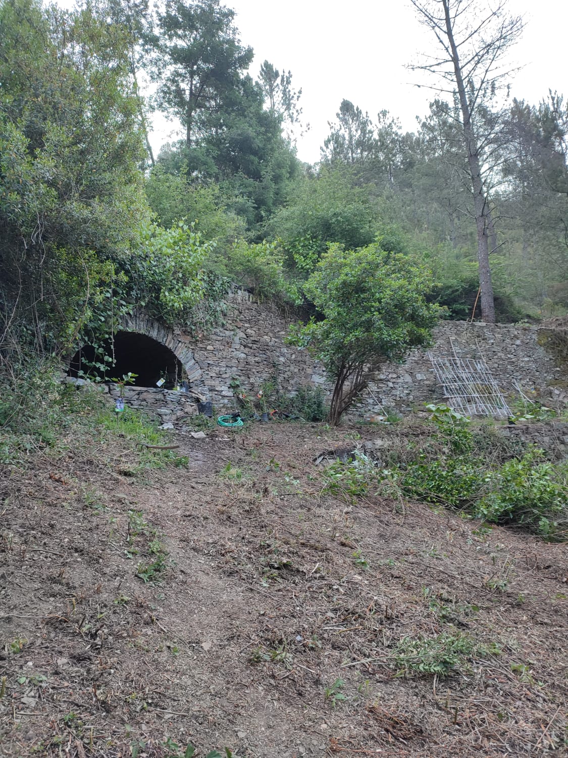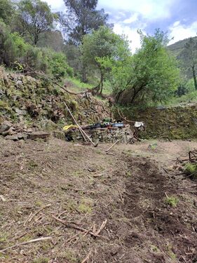 Excellent farm with a large area of land in a very peaceful area near Góis in central Portugal. The property would be ideal either for a permaculture, self-sufficiency project or for use in commercial production. Access is by a good dirt road. The property is composed of agricultural land of close to 5000m2 in central and west-facing side terraces, a large forested area and a xisto ruin for restoration with good walls. There is a spring on the property with a water tank for irrigation, and a stream that runs all year in the valley where the property is situated. Above the property there is also a natural swimming pool formed by an old mill race, and there are several river beaches nearby in the Ceira Valley. The village of Cabreira, where there is a restaurant and café, is within 10 minutes’ drive of the property, and all the amenities of Góis are within 20 minutes’ drive.