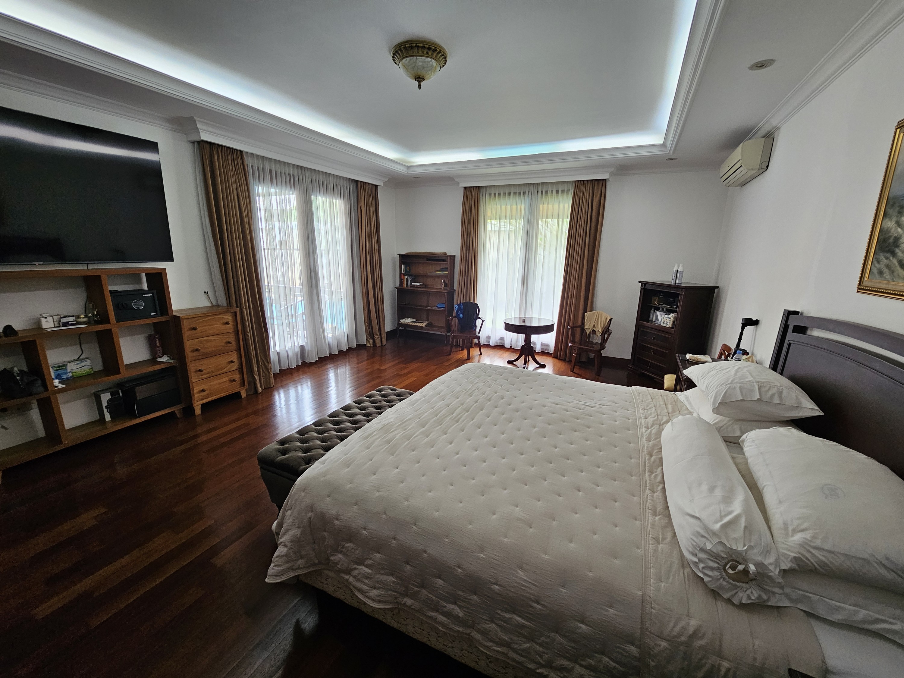 - Large living room that opens directly to the back garden and the swimming pool.