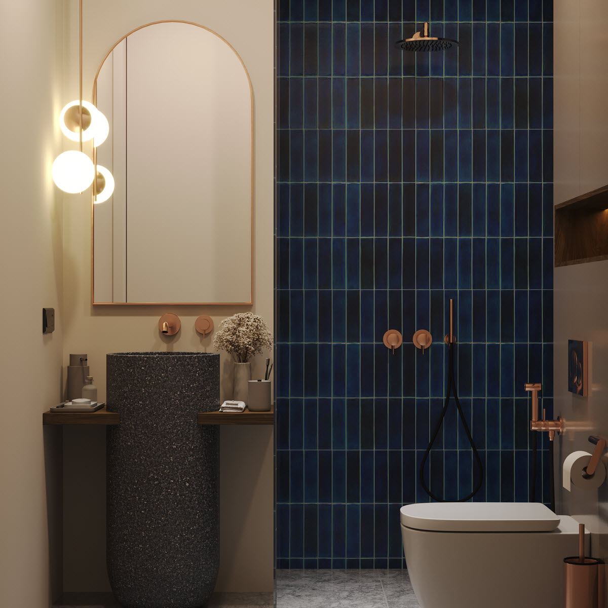 The inaugural residential phase unveils Elysium's flagship high-rise, embodying the perfect fusion of urban sophistication and coastal charm. These elevated apartments boast breathtaking ocean vistas set against Bali's verdant rice terraces. The 1-bedroom units feature expansive floor-to-ceiling windows, creating light-filled, open-plan interiors with sweeping panoramic views. Early Investors have an opportunity to chose between 3 color options for their units (Grey, Blue and Green)