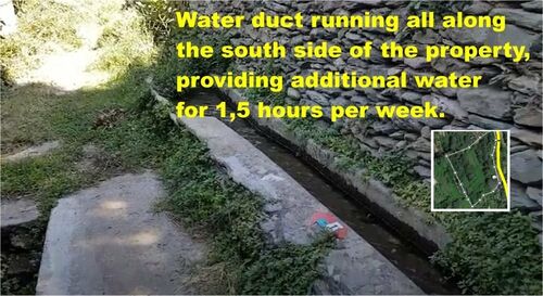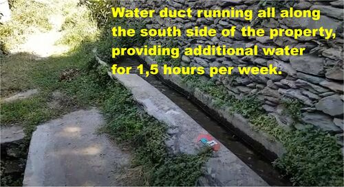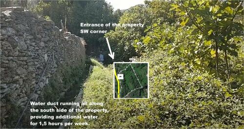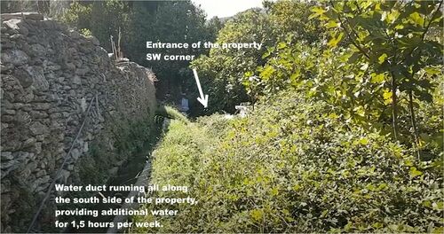 The plot is 4.135 m2 with 3 springs of drinkable water, a two-storey house (70 m2) (built in 1980), a 9 cubic meters volume water cistern, and over 100 fruit trees, including olive trees, lemon, orange, tangerine, walnut, apricot, plum, peach, cherry, bullace and other trees. Located within the city plan, with a building factor of 40%, this property is completely independent as it is surrounded by small roads and a river.